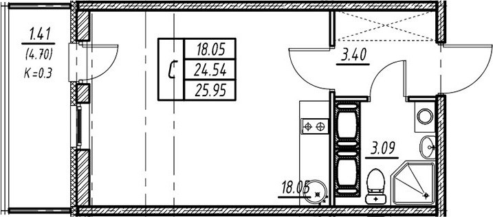 Общая площадь 25.95 м2