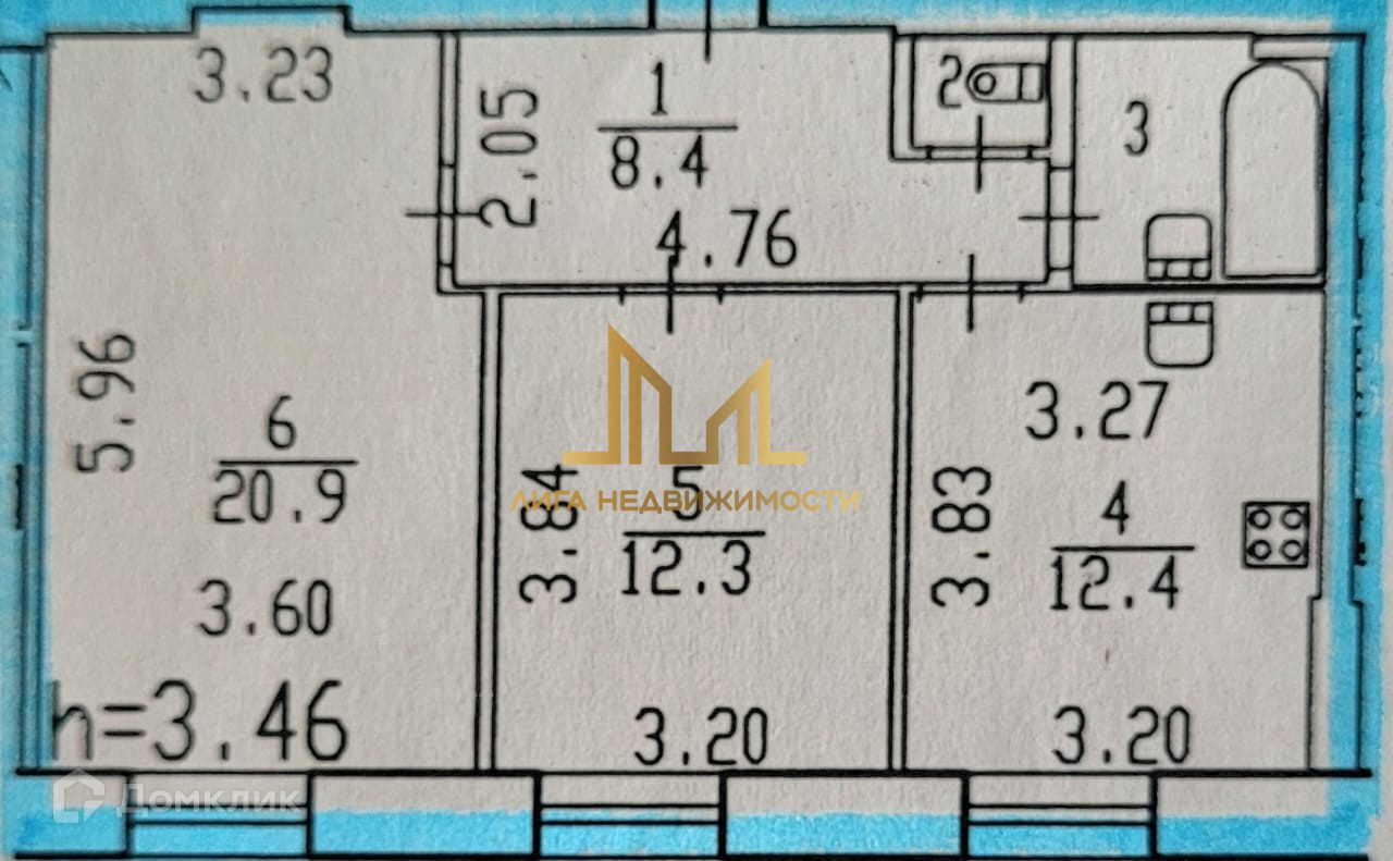 Площадь кухни 12.4 м2