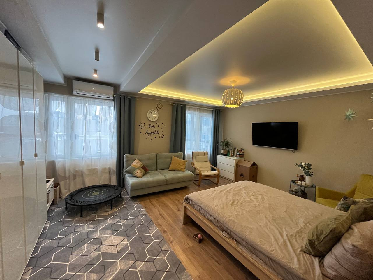 В квартире выполнен евроремонт, смонтированы кондиционеры.