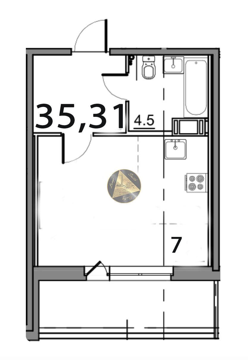 - Общая площадь квартиры 35,31 м2.