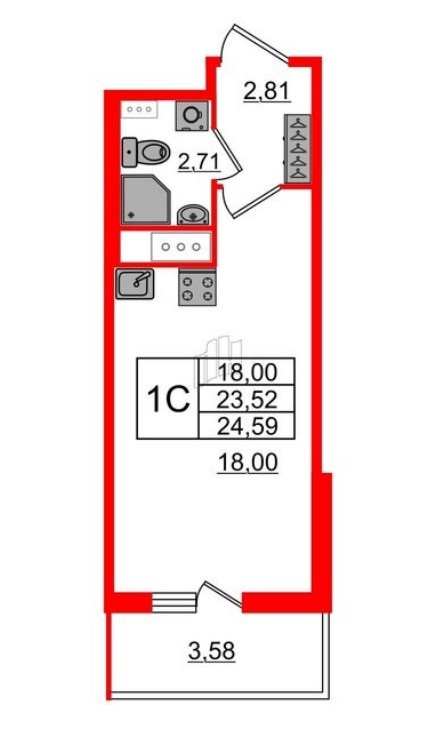 Общая площадь 23.52 м2
