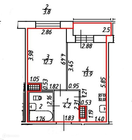 Общая площадь 34.2 м2