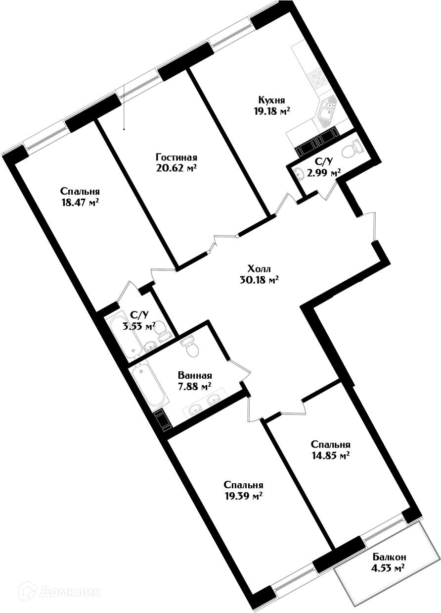 4-комнатная квартира, 140.5 м2, этаж 3 / 7, на продажу в Санкт-Петербурге, Малодетскосельский проспект, 38В