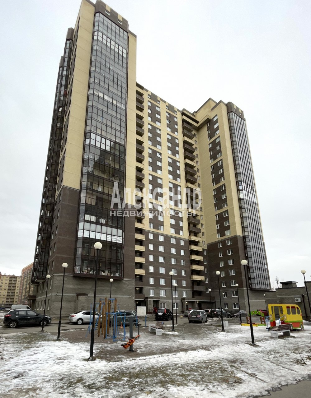 Во дворе детские площадки, открытая парковка и подземный паркинг, супермаркет `Пятерочка`,