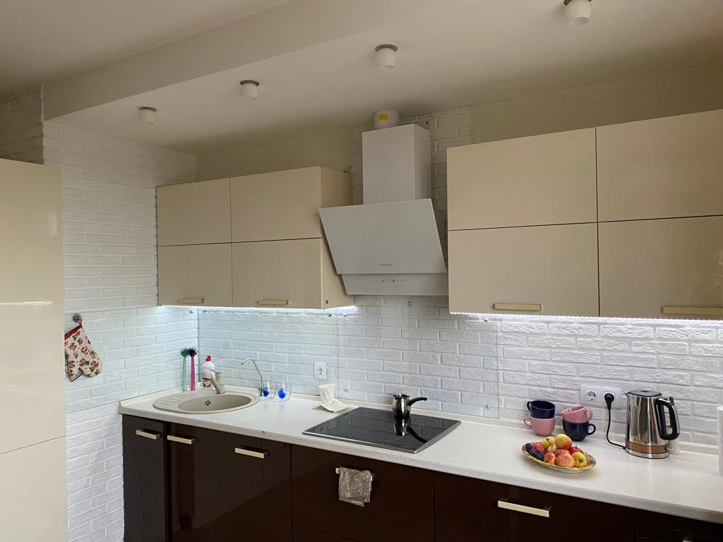 -просторная кухня (13,5 м²), правильной формы, с новым кухонным гарнитуром, сделанным НА ЗАКАЗ, остается новым владельцам;