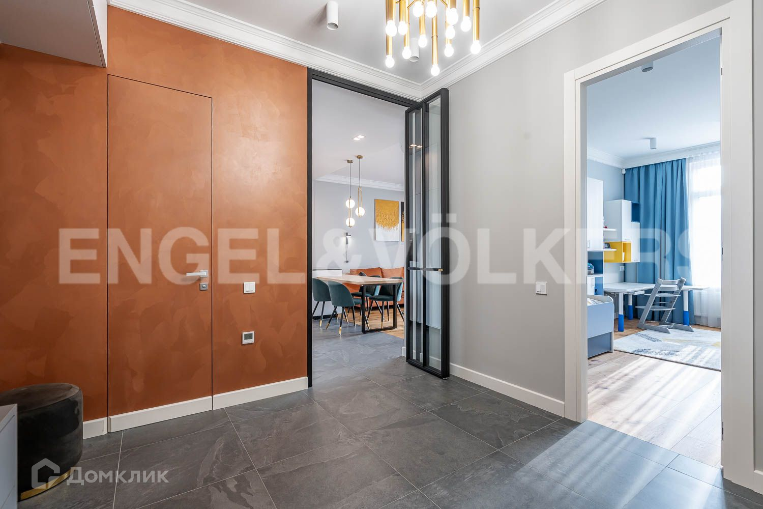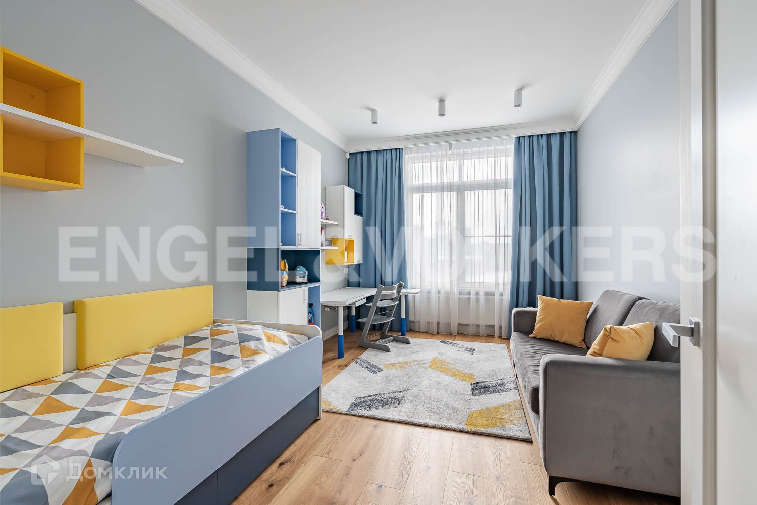 Квартира расположена на 5 этаже и ориентирована окнами на юг. Большие окна наполняют солнечным светом и воздухом все пространство. Здесь очень тихо! Внизу расположился уютный дворик с детской площадкой, клумбами и декоративным панно на стене прилегающего дома. Высота потолков в квартире - 3м. Столь удобную планировку, с большим квадратным холлом и расположенными по кругу помещениями, редко встретишь в современном исполнении. Кухня-гостиная 21,8 кв.м  грамотно зонирована на рабочую зону кухни, с полным оснащением и мощной вытяжкой, обеденную зону и зону отдыха с большим диваном и TV. Из гостиной можно переместиться на просторную лоджию, где, сдвинув панорамное остекление, устроить настоящий пикник. Ремонт в квартире закончен только год назад, абсолютно не амортизирован. Цветовое решение выполнено в комфортной скандинавской гамме, подчеркнутой акцентами природных материалов. В квартире два санузла, большое количество зон хранения. В спальне оборудована гардеробная. А из уютной детской комнаты, с яркой и удобной мебелью, Вы точно не сможете увести своего ребенка! В эту квартиру можно прийти только с личными вещами – все продумано до мелочей.