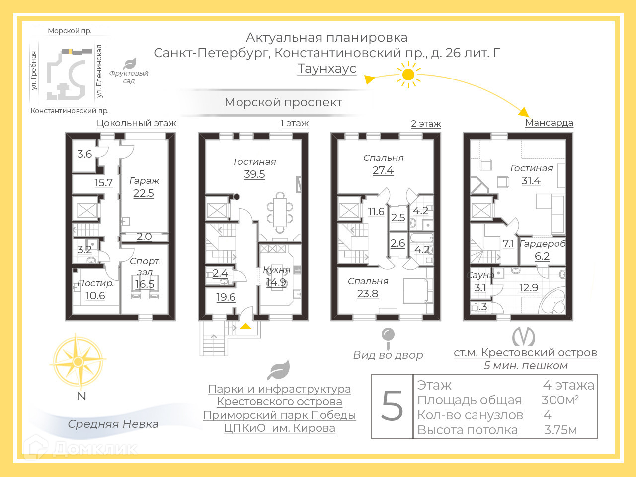 5-комнатная квартира, 300 м2, этаж 4 / 4, на продажу в Санкт-Петербурге, Константиновский проспект, 26Г