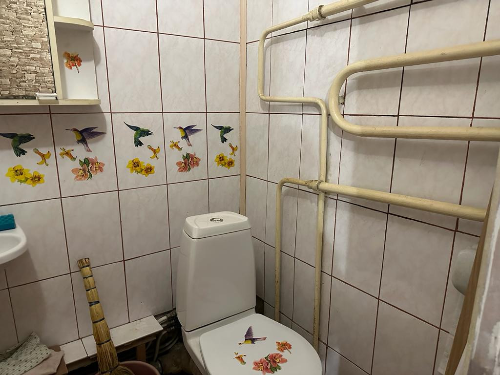 Площадь комнаты - 17,3 кв.м., кухня - 5,3 кв.м., совмещенный санузел, есть балкон. Дом газифицирован.