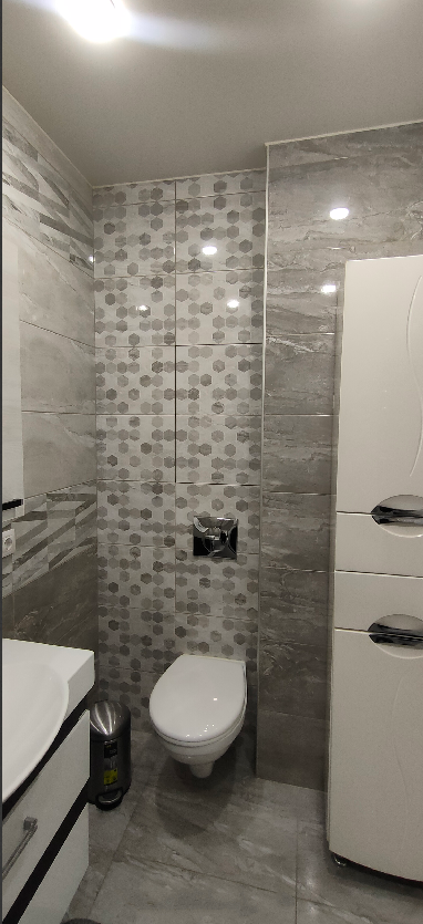 Раковина - Sanita luxe; ванна - Roca; стиральная машина - Bosch; унитаз подвесной - Cersanit; холодильник - Candy; вытяжка - Weissgauff; духовой шкаф - Hansa; варочная панель - Indesit.