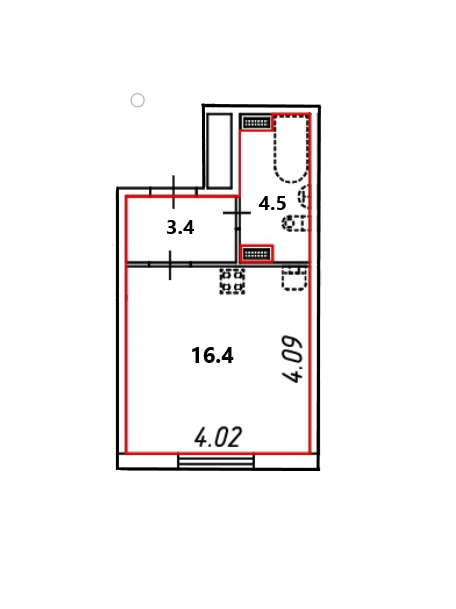 Жилая площадь 16.4 м2