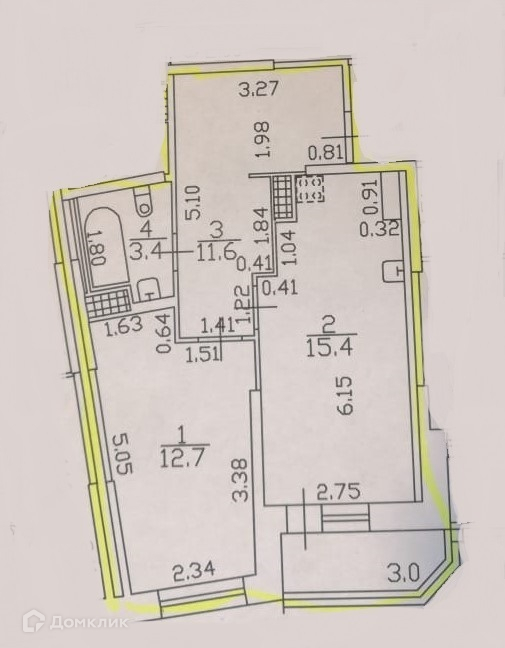 Жилая площадь 12.7 м2