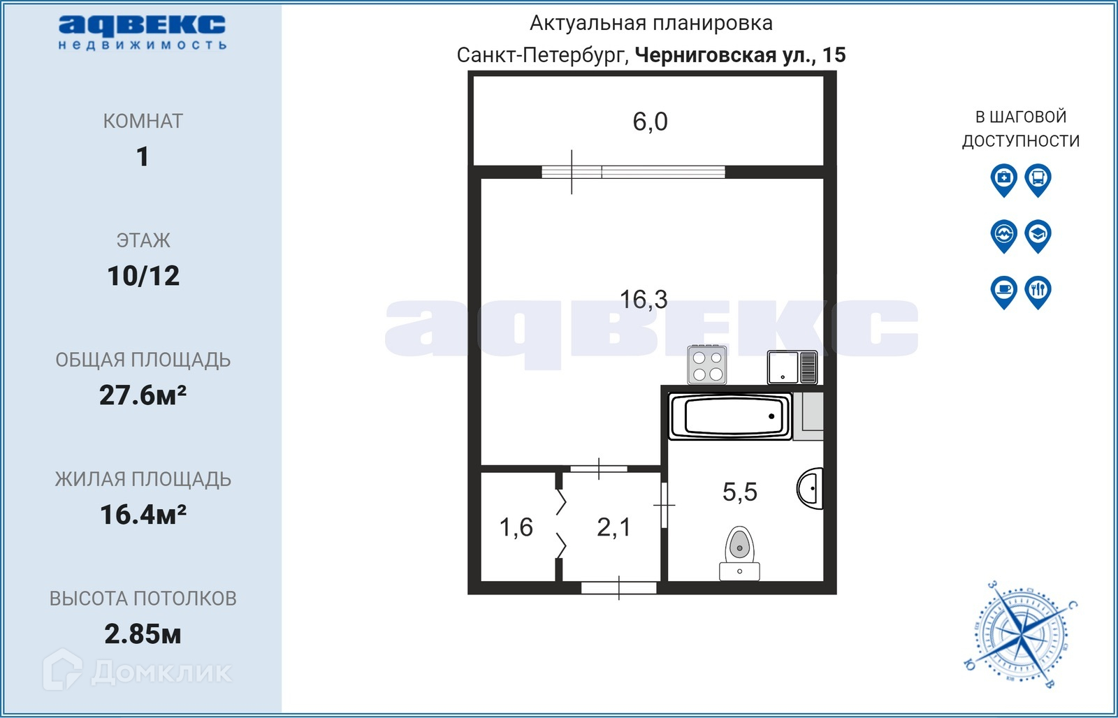 Квартира студия, 30 м2, этаж 10 / 12, на продажу в Санкт-Петербурге, Черниговская улица, 17