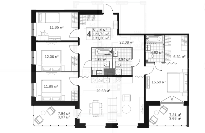Общая площадь 131.36 м2
