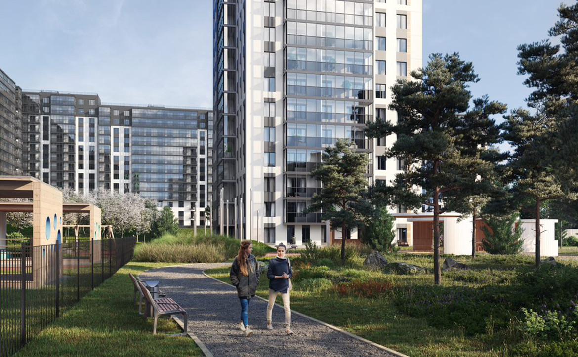 В состав жилого комплекса входят три детских сада и школа. В корпусах установлены бесшумные скоростные лифты и предусмотрены кладовые помещения. Для автовладельцев спроектированы подземный паркинг и открытые парковочные места. Во дворе установлены детские и спортивные площадки с безопасным покрытием из натуральных материалов. Придомовая территория благоустроена ландшафтным дизайном и интерактивным модулем: «стеной-событием».