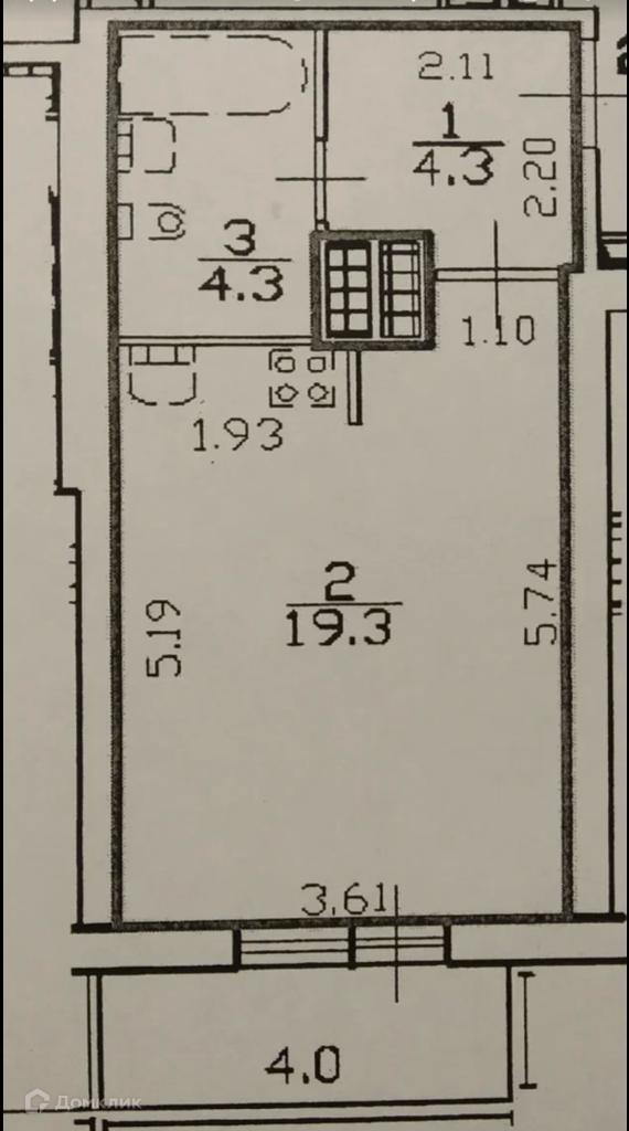Жилая площадь 19.3 м2