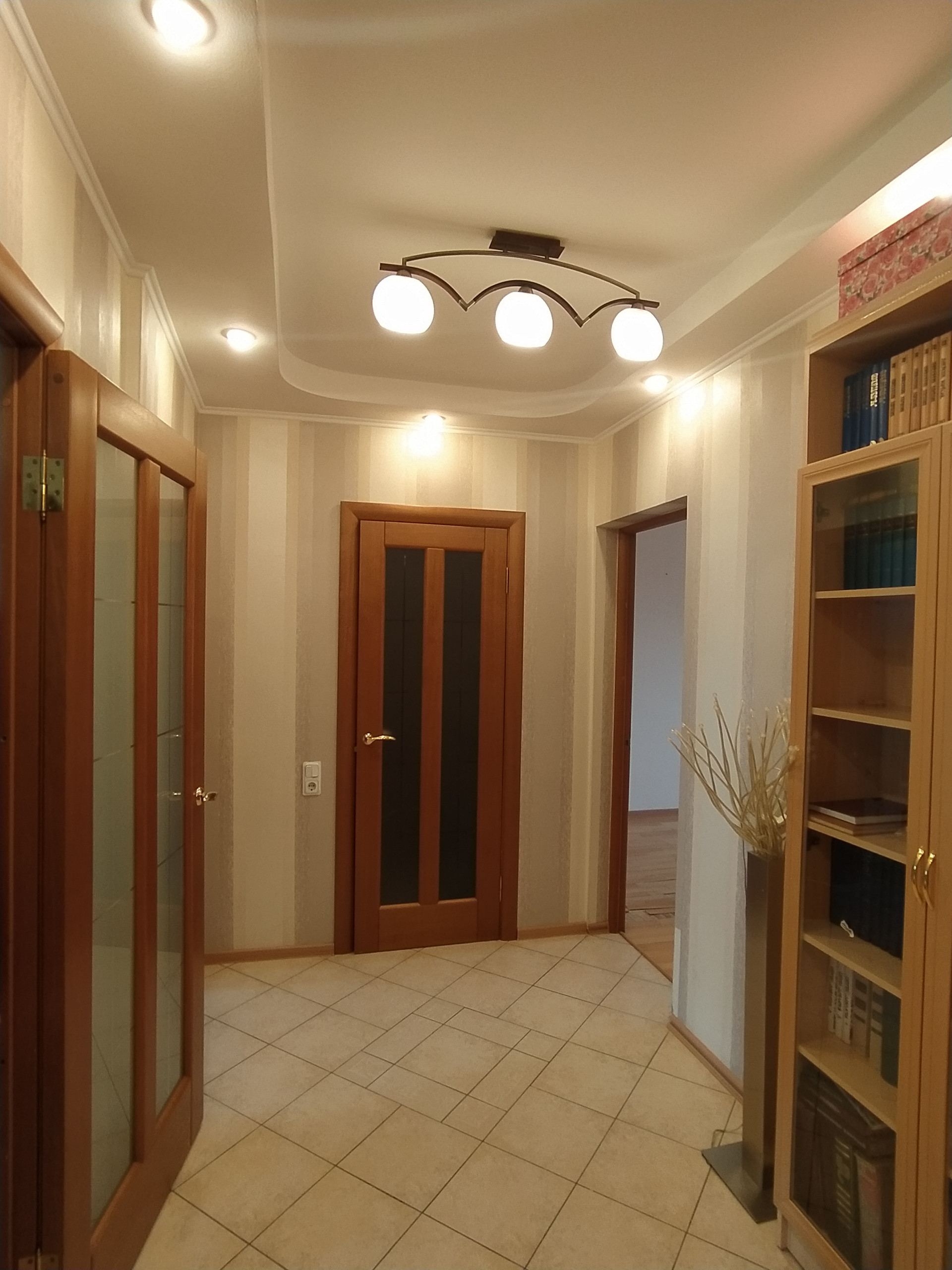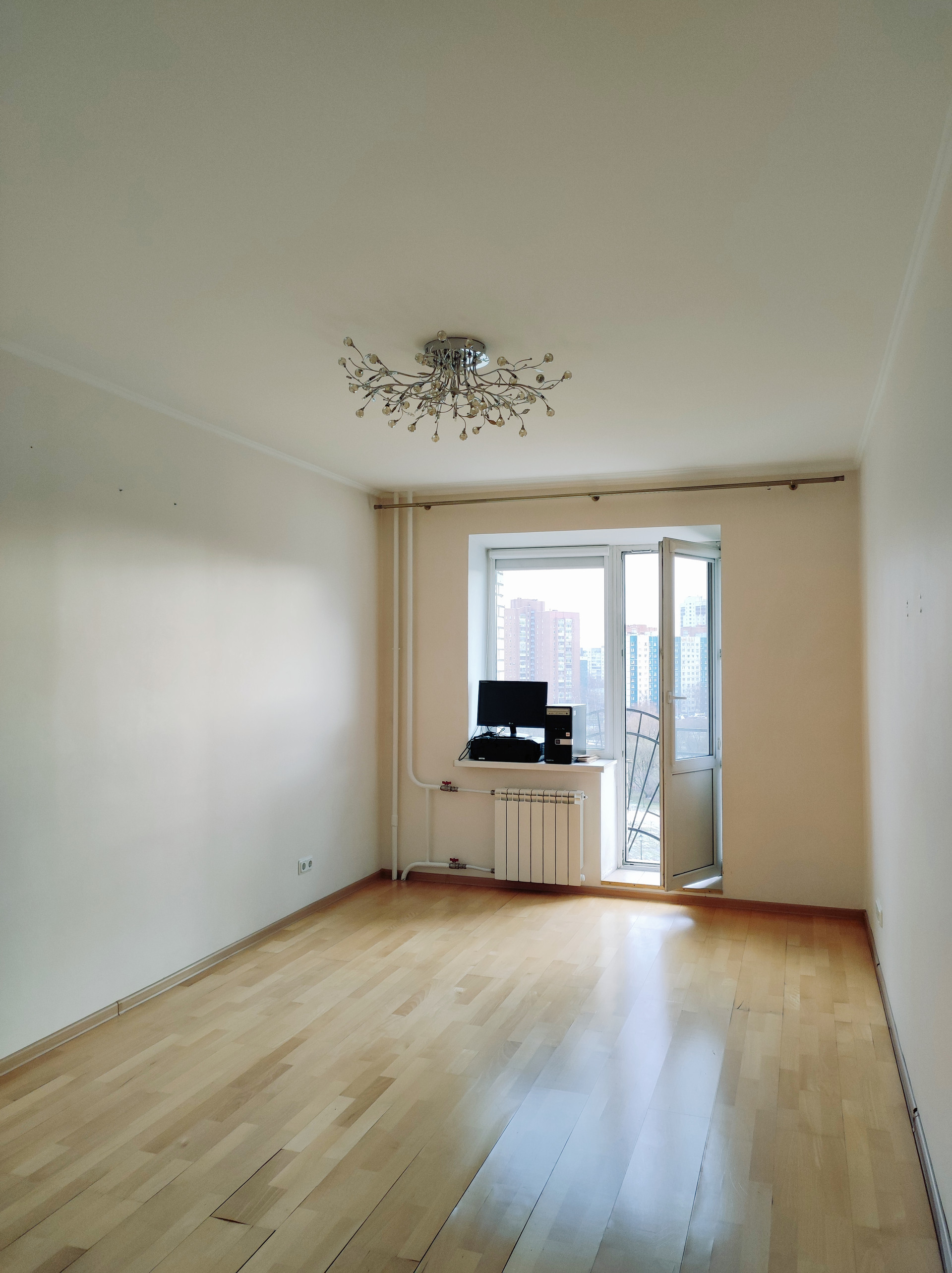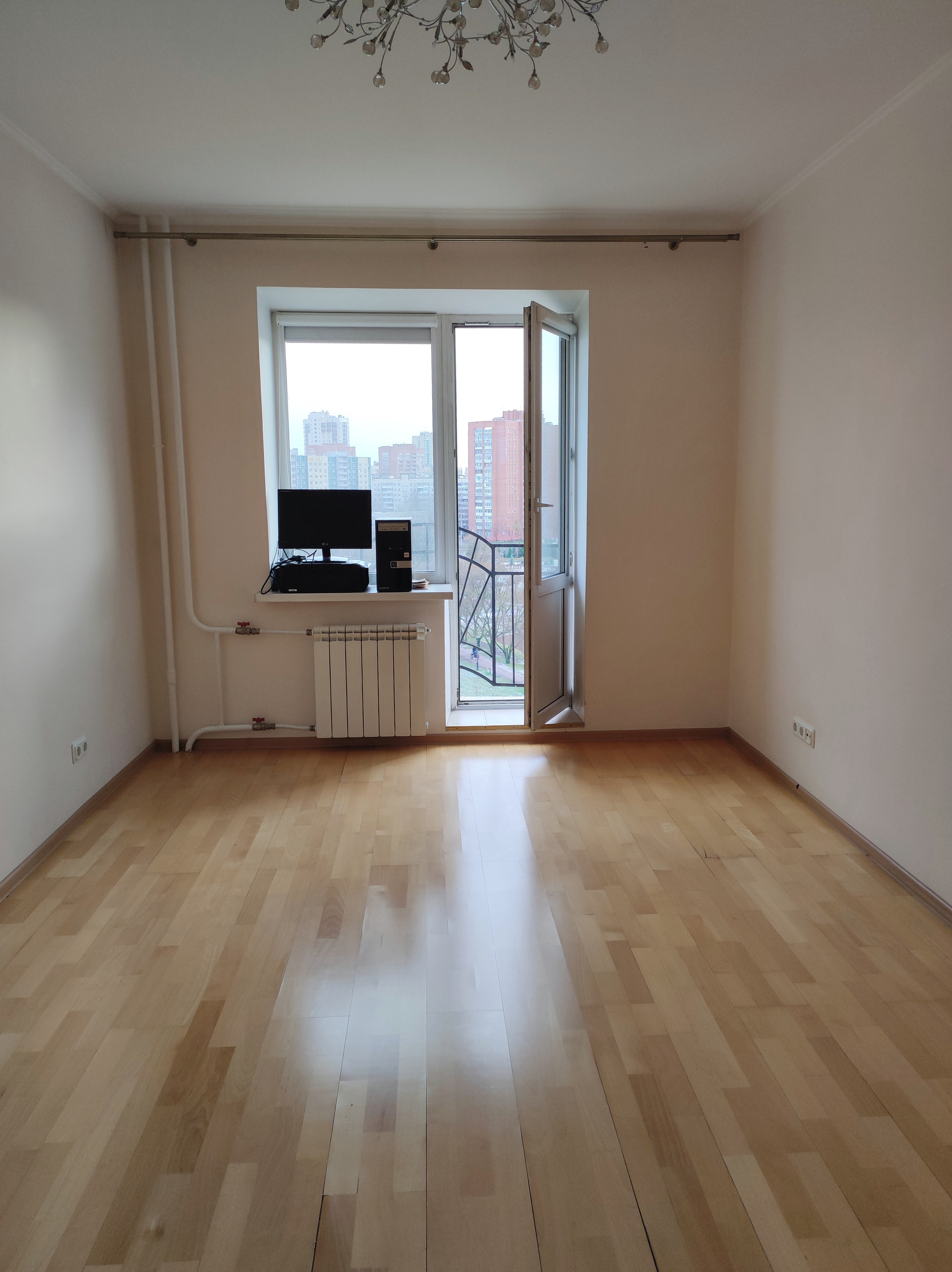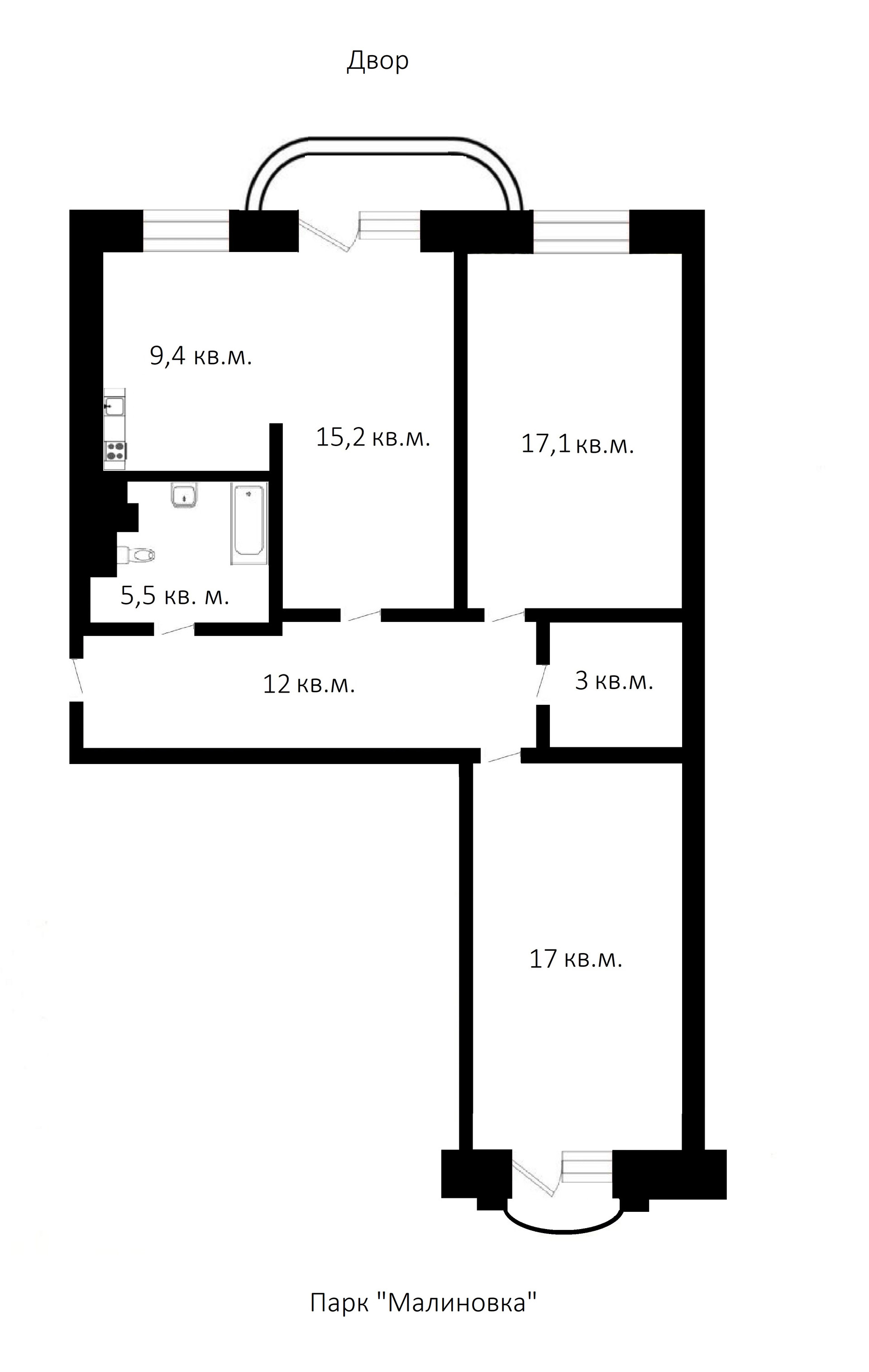 Квартира 80,3 кв.м, трехкомнатная. В квартире был сделан хороший ремонт, все выровнено, остаётся мебель в прихожей, кухня со встроенной техникой, светильники. Двусторонняя планировка. Большие, с широкими подоконниками окна кухни с гостиной и одной из спален выходят во двор (есть лоджия, утепленная с освещением), окна второй спальни выходят на красивый парк "Малиновка". Изумительным панорамным видом из окна можно полюбоваться с французского балкончика, выход на который есть из этой спальни.