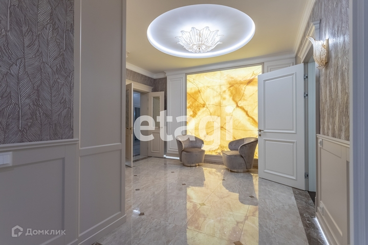 В оформлении интерьера использованы световые решения от Masiero, De Majo, Vistosi, Euroluce, мебель от Hooker furniture, Caracole, BM Style, сантехника и мебель в ванных комнатах от Zucchetti Savoir, Canova Royal, Knief, Margaroli, Fantini, Duravit 1930 Series, ME by Starck, Knife, Antoniolupi, два панно из натурального оникса.