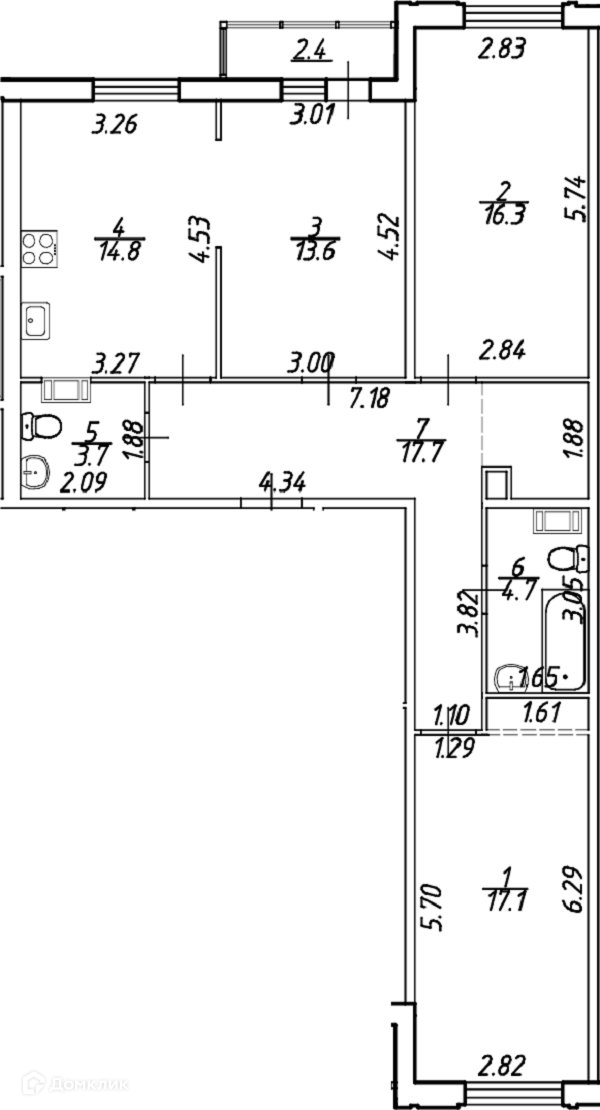 3-комнатная квартира, 89 м2, этаж 5 / 10, на продажу в Санкт-Петербурге, Днепропетровская улица, 65