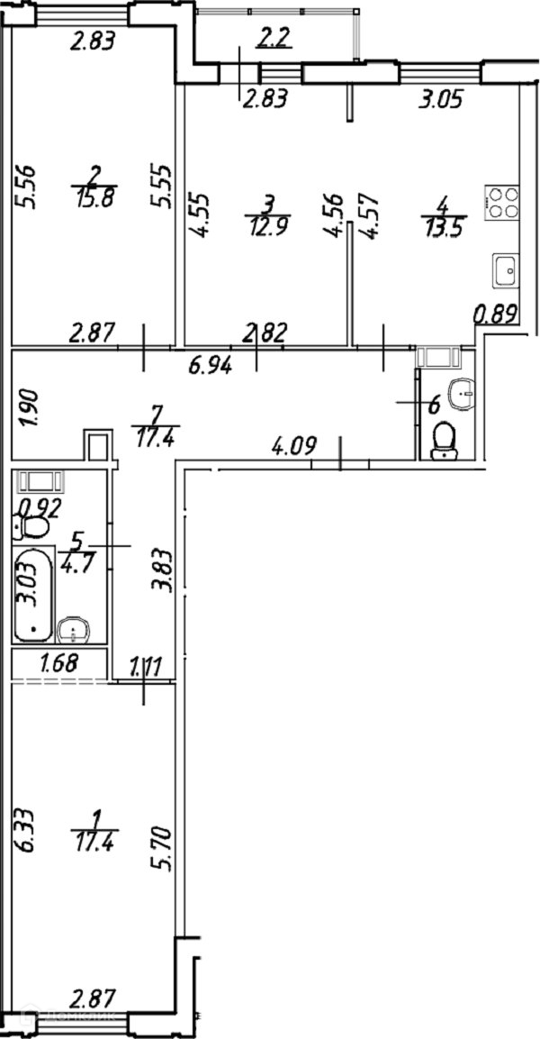 Количество комнат 3