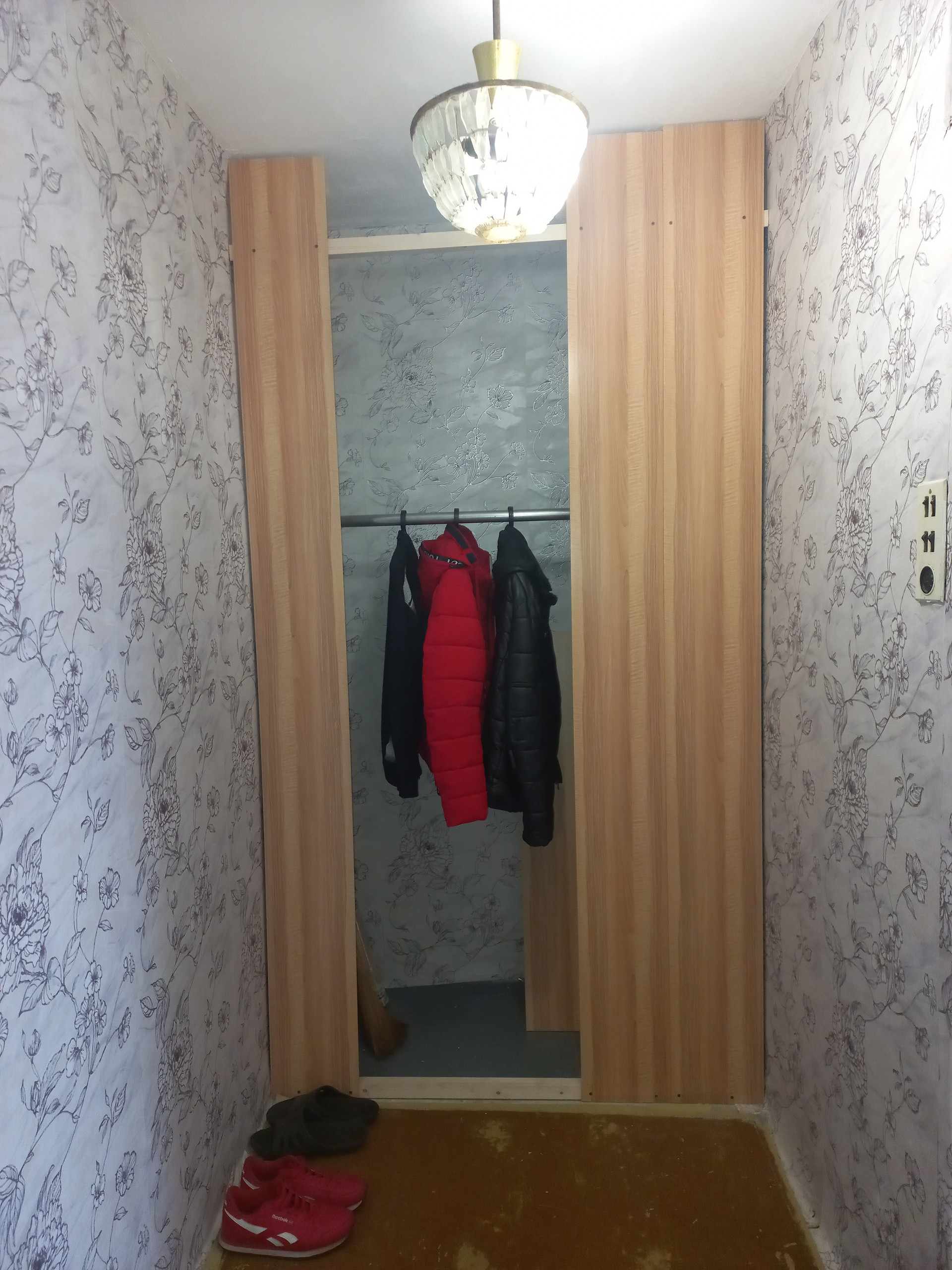 В коридоре присутствует отличное место для гардеробной - это одно из преимуществ планировки домов-кораблей равно как большое по площади окно в комнате (см. фото).