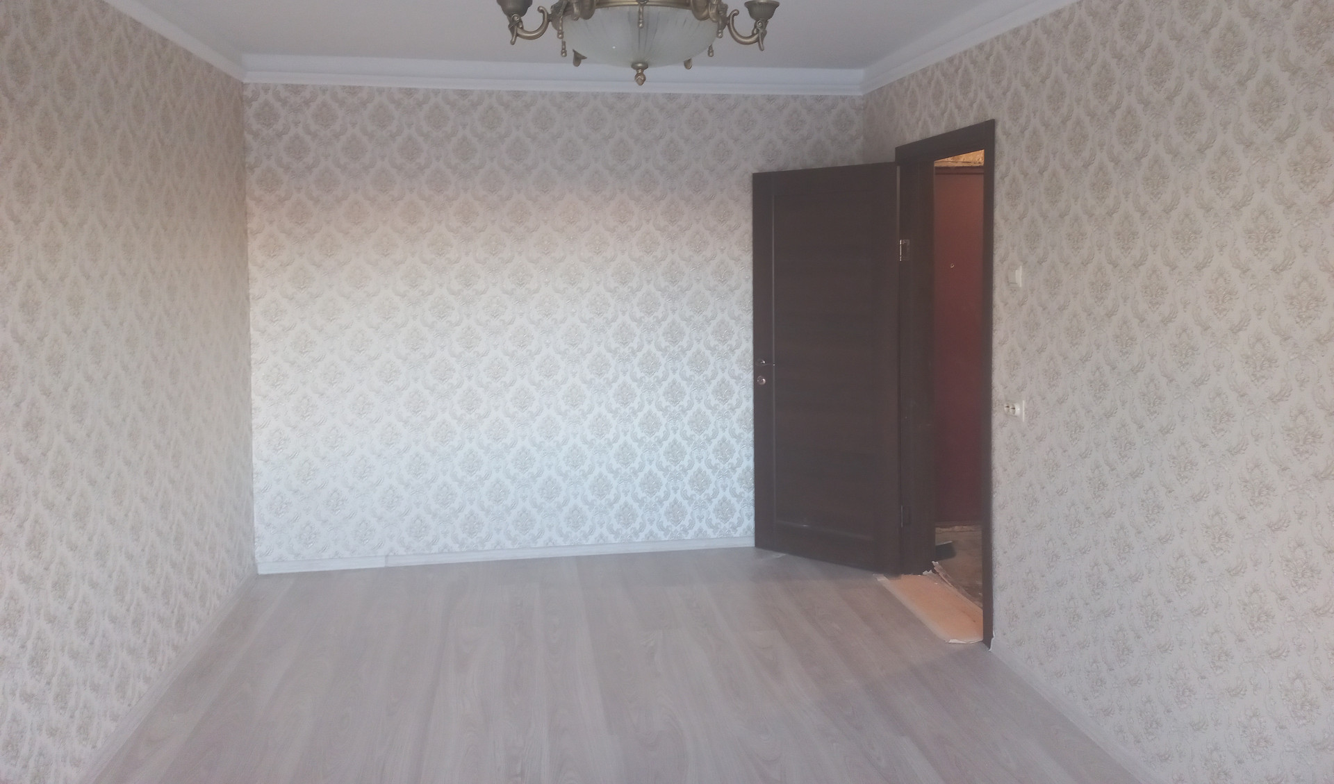 В комнате установлен новый радиатор отопления и поклеены дорогие и красивые обои.
