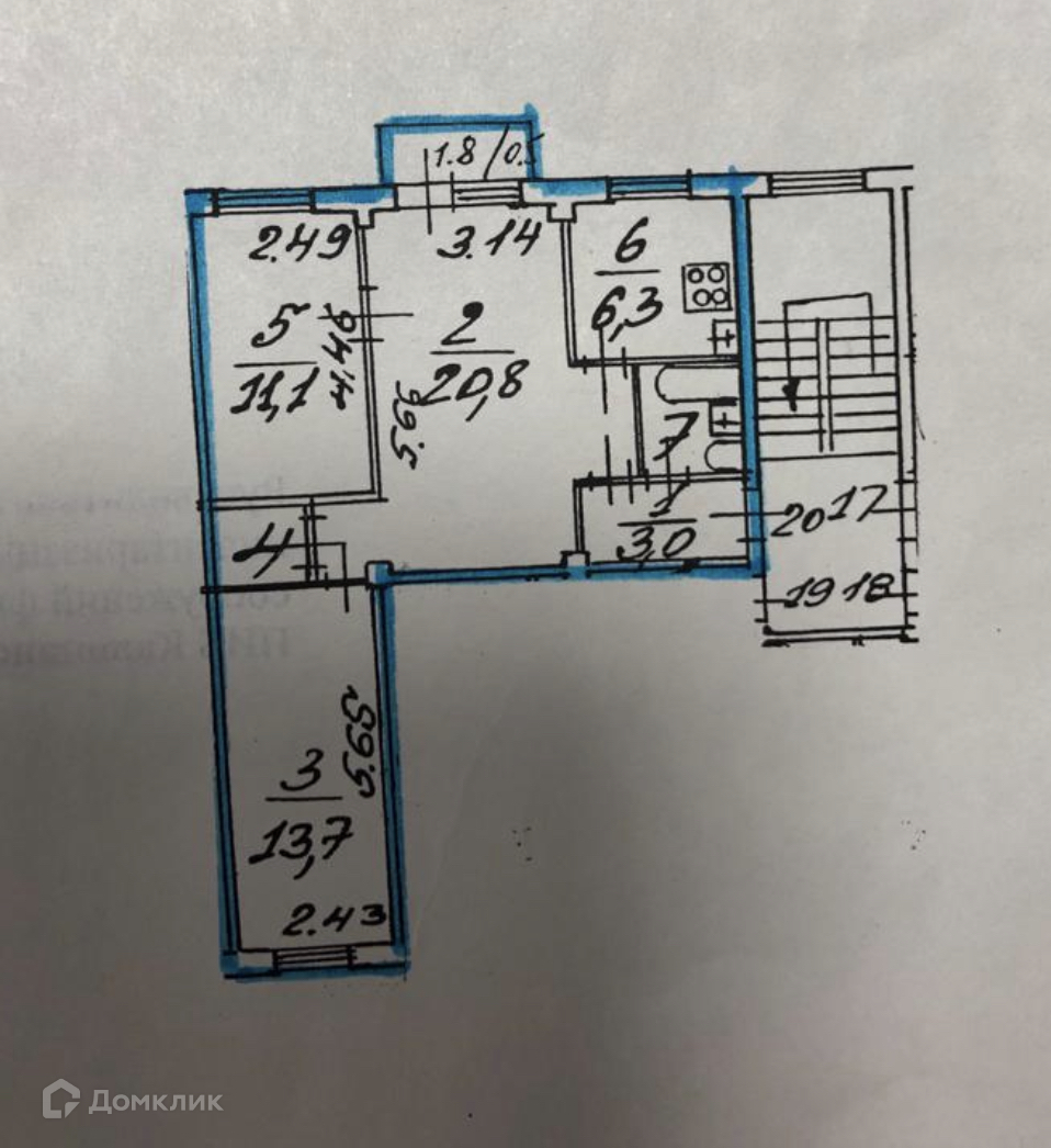 Площадь кухни 6.3 м2
