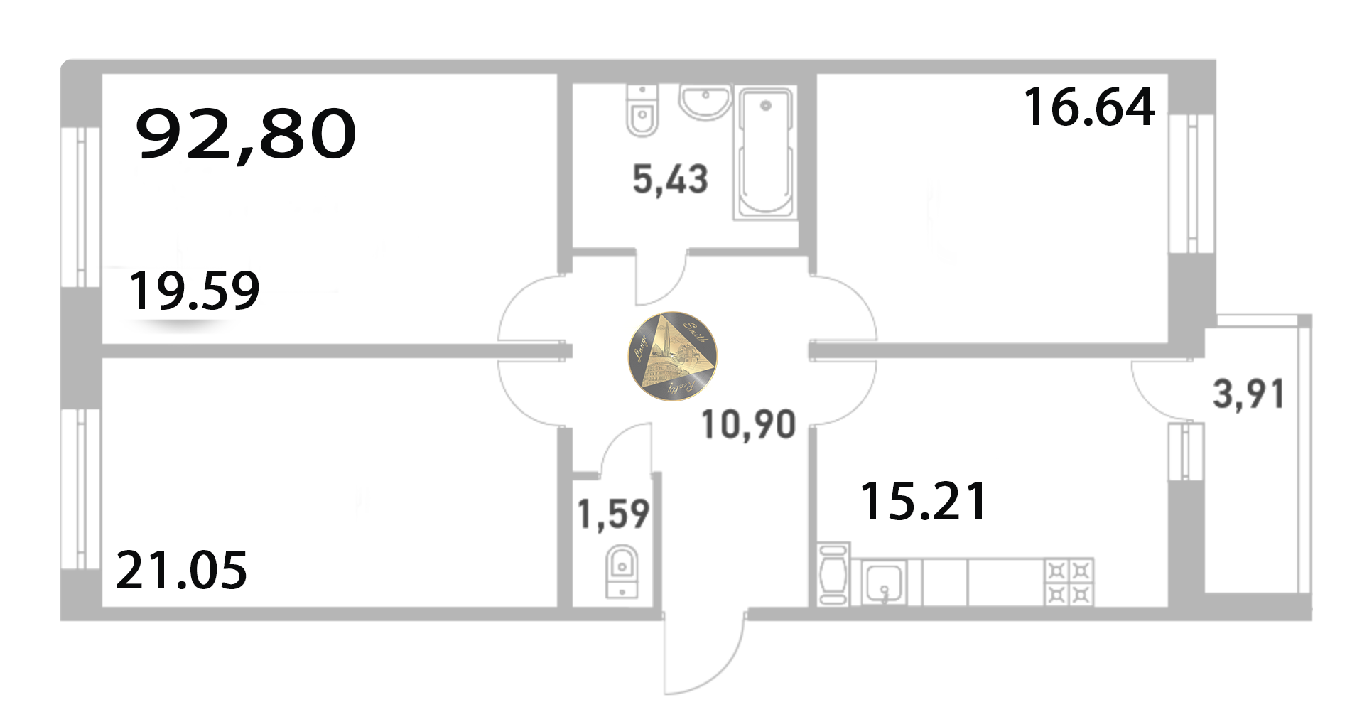 - Общая площадь квартиры 92,80 м2.