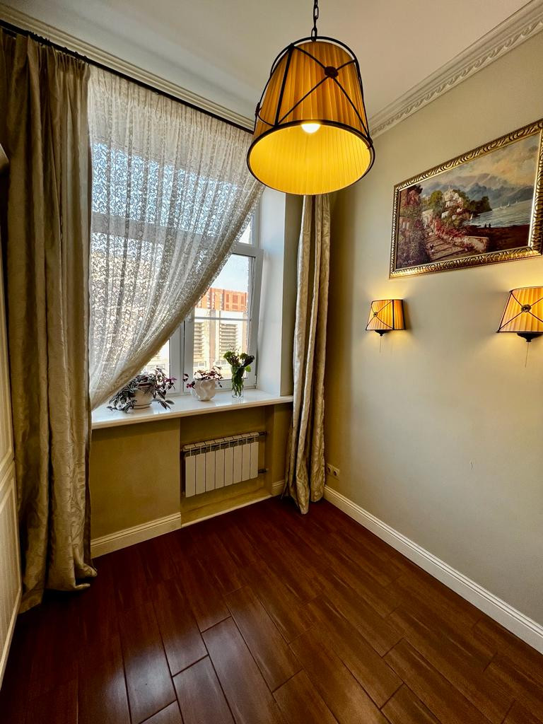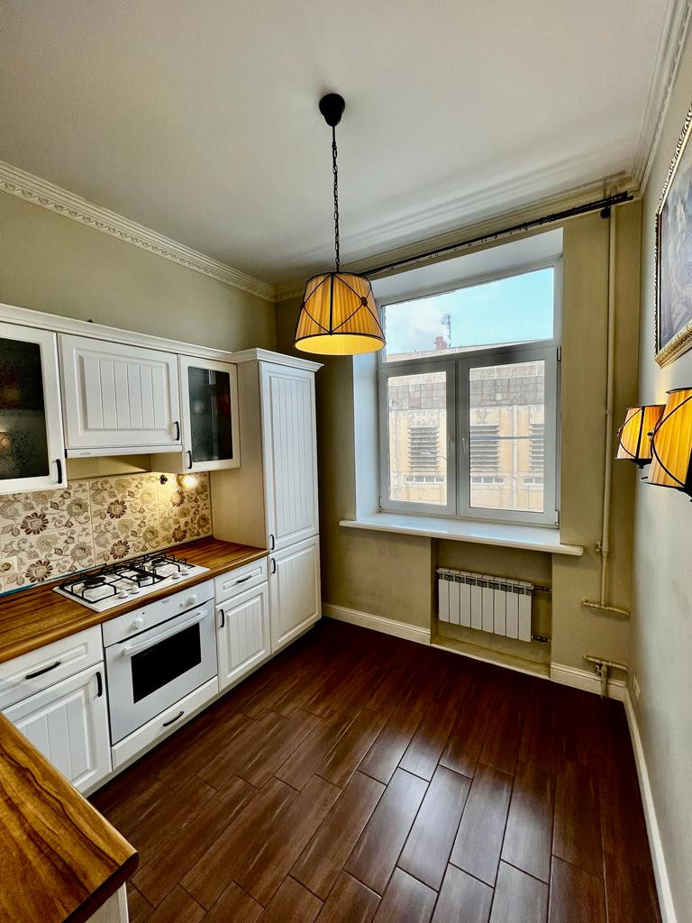 Светлая двухкомнатная квартира с качественным ремонтом, расположенная в престижном Московском районе. Сталинский дом, высокие потолки 3.05 м., просторные комнаты с большими окнами, выходящими на зеленый двор и улицу, квартира теплая, светлая. Все инженерные коммуникации заменены, санузел 5 м2, горячая вода-новая, современная газовая колонка, индивидуальная продуманная планировка квартиры. Новым жильцам в подарок останется кухня.