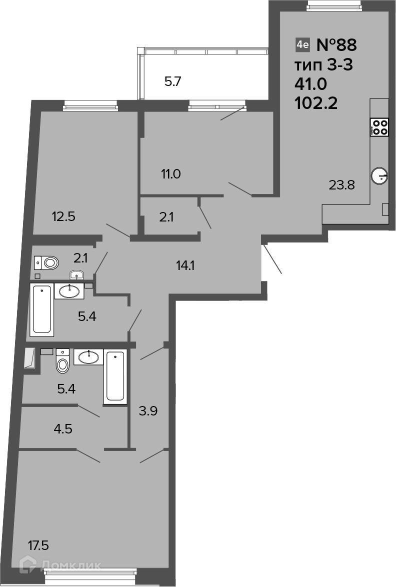 3-комнатная квартира, 105.05 м2, этаж 2 / 6, на продажу в Санкт-Петербурге, 11-я Красноармейская улица, 11