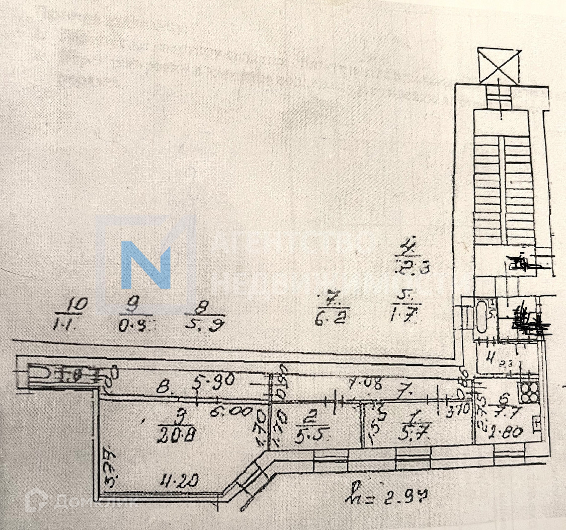 3-комнатная квартира, 57.8 м2, этаж 6 / 6, на продажу в Санкт-Петербурге, Смольный проспект, 9