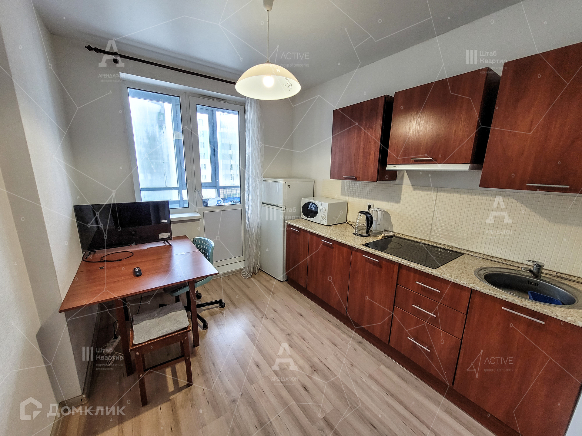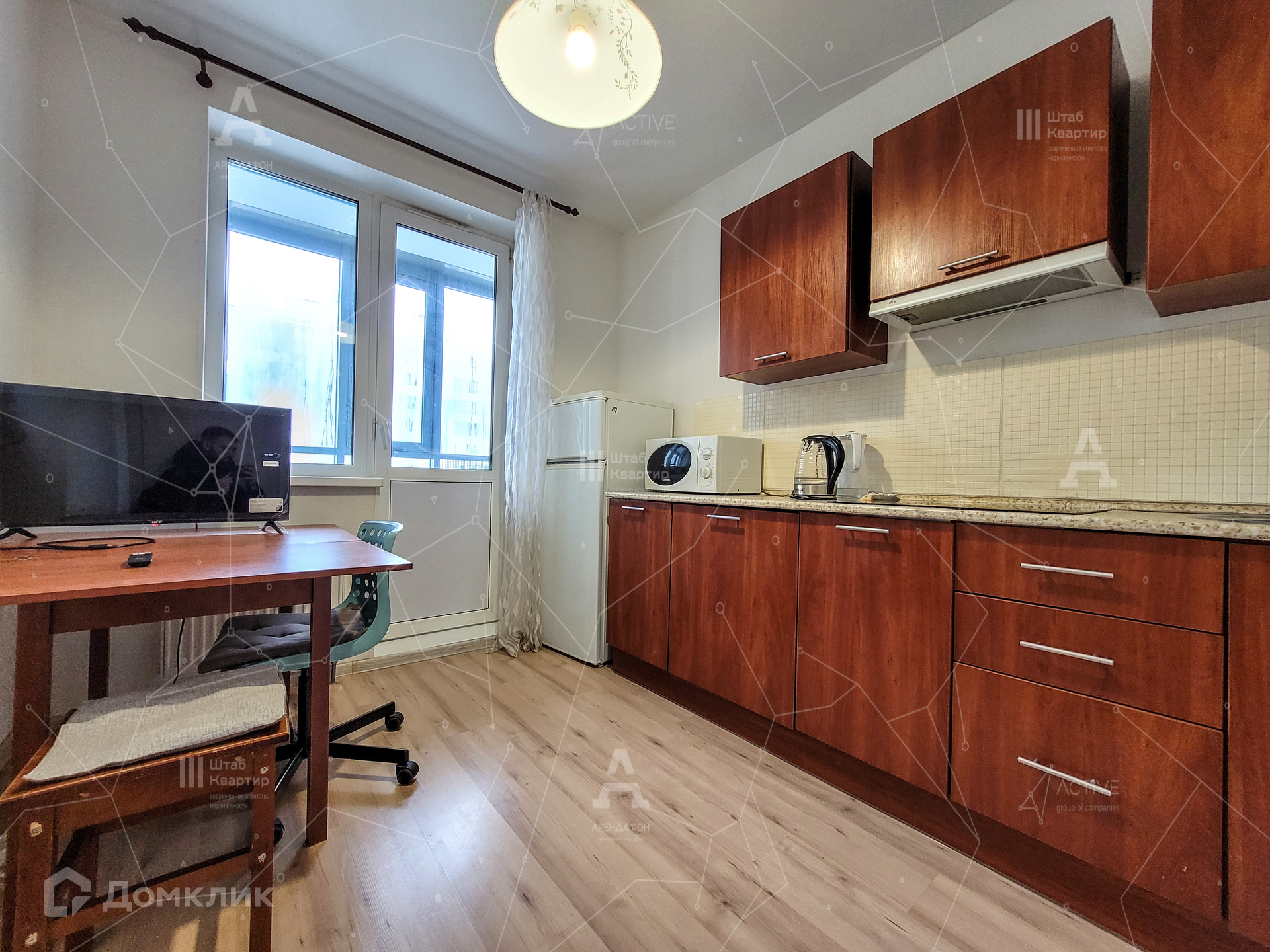 По планировке изолированная комната, кухня, совмещенный санузел, корридор и огромная лоджия. Оба окна выходят во двор (северо-восточная сторона).
