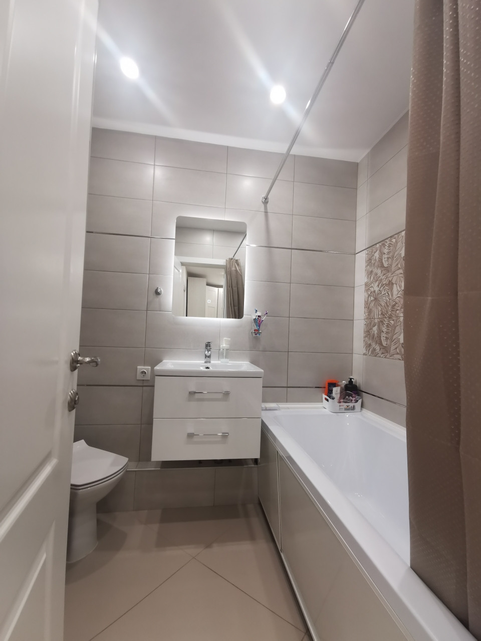 - в санузле установлена акриловая ванная, тумба с раковиной CERSANIT;