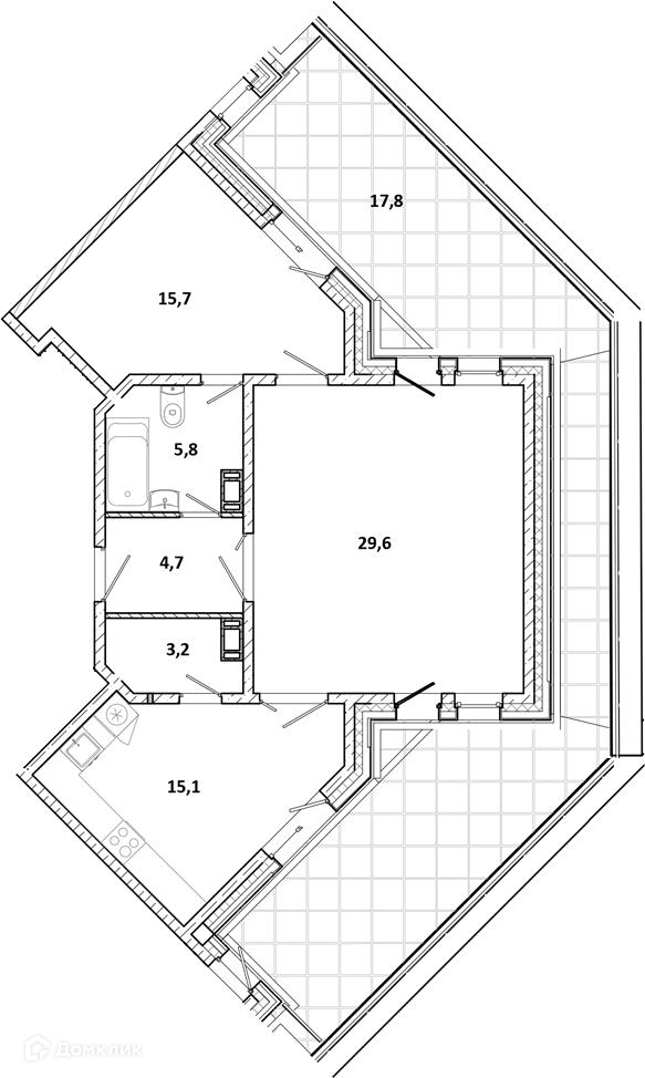 Жилая площадь 45.3 м2