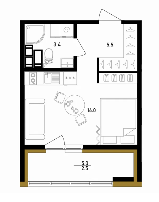 Жилая площадь 16 м2
