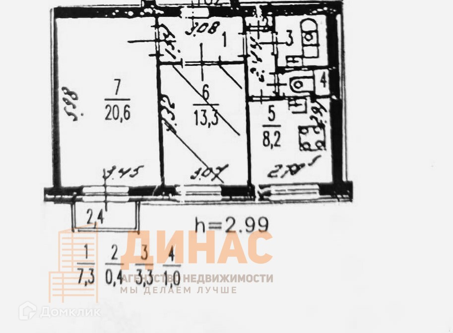 Высота потолков 2.99 м
