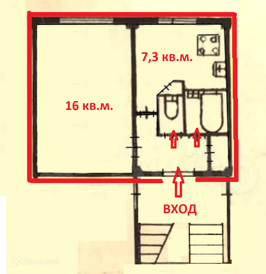 Жилая площадь 16 м2