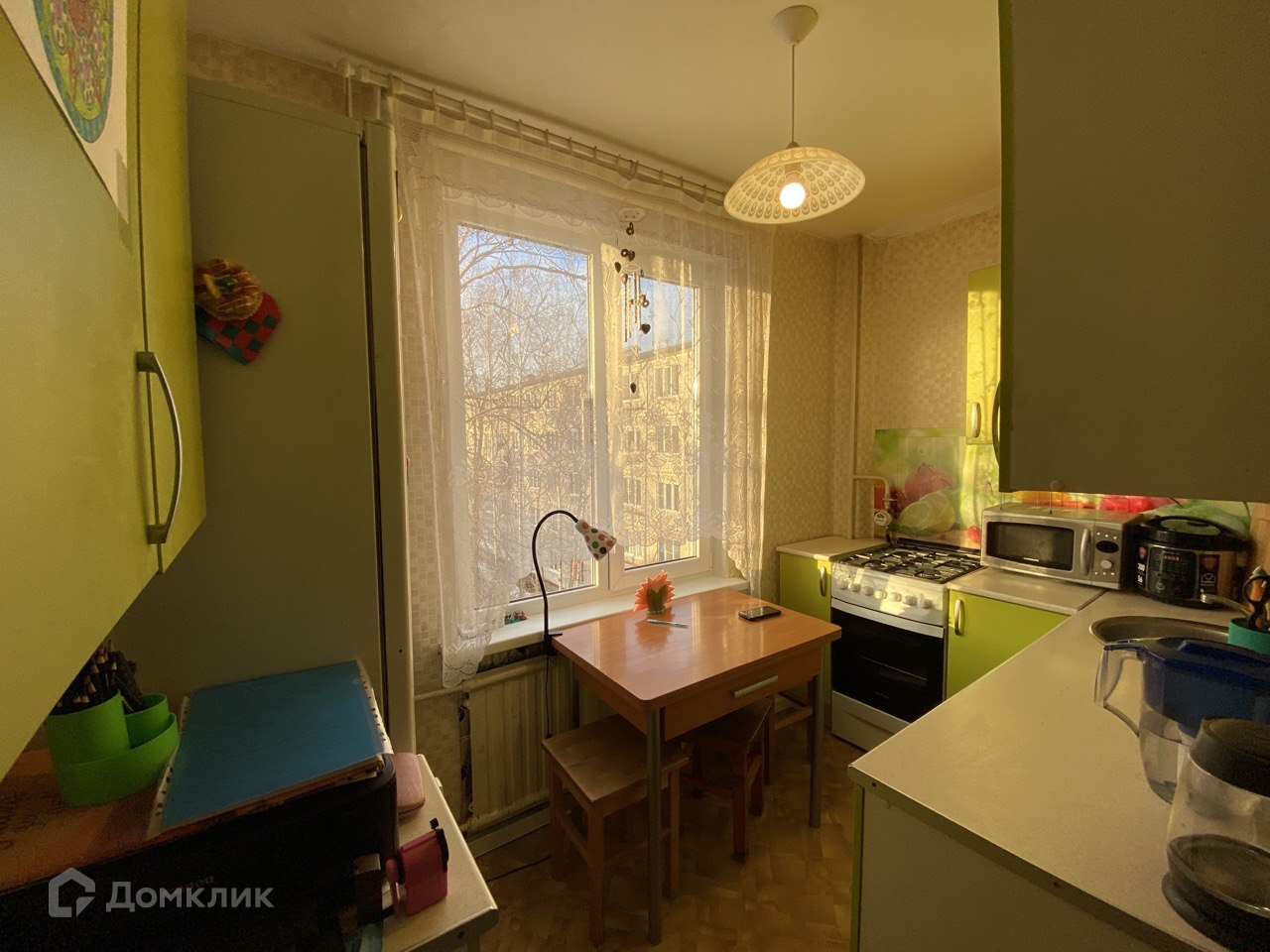 В округе много зелени, квартира теплая в приличном состоянии, соседи хорошие.