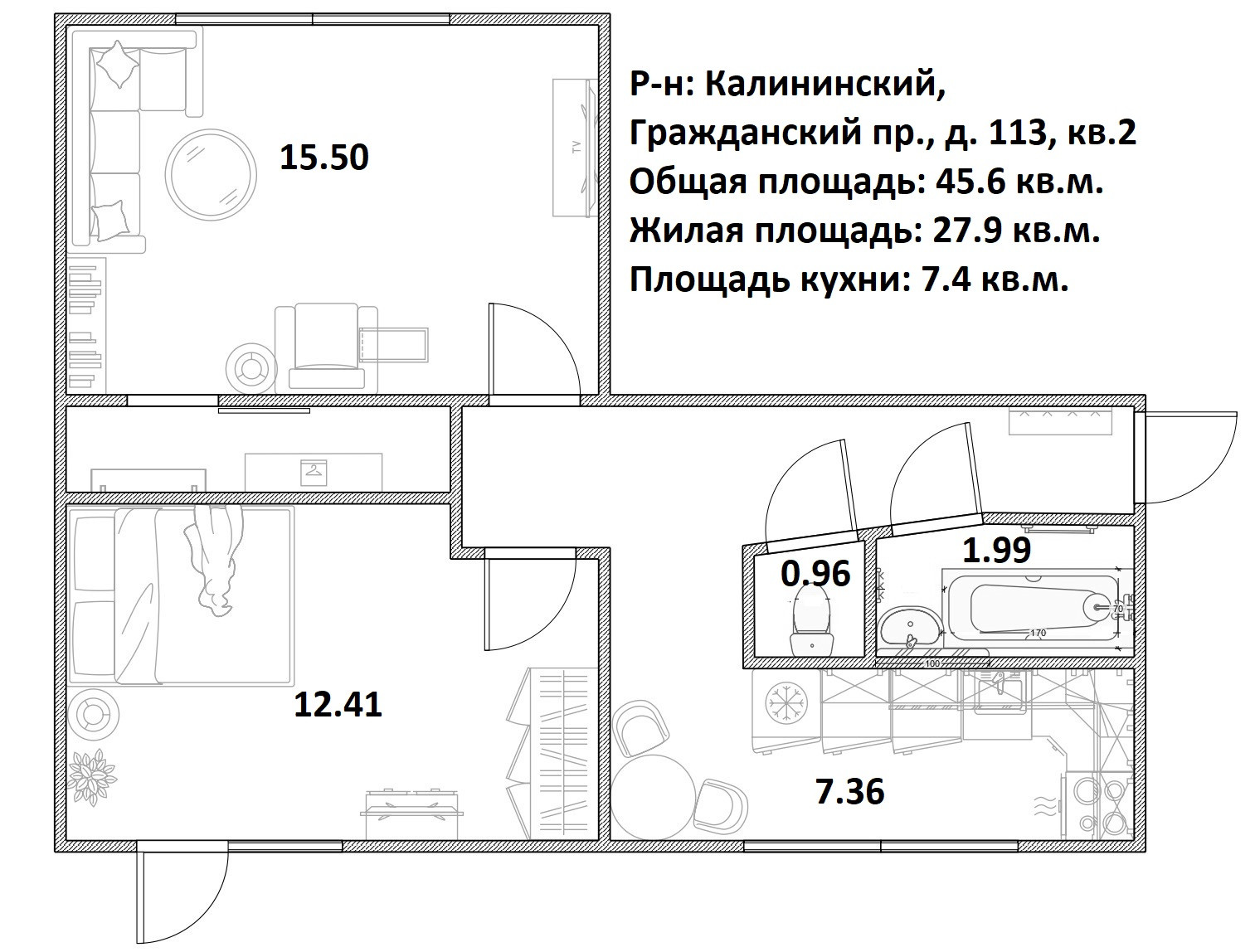 Представляем к рассмотрению тёплую, светлую квартиру в Калининском районе, которая расположена в шаговой доступности (10 минут пешком) от м."Гражданский проспект", что позволяет доехать до центра города, без пересадок, всего лишь за 30 минут.