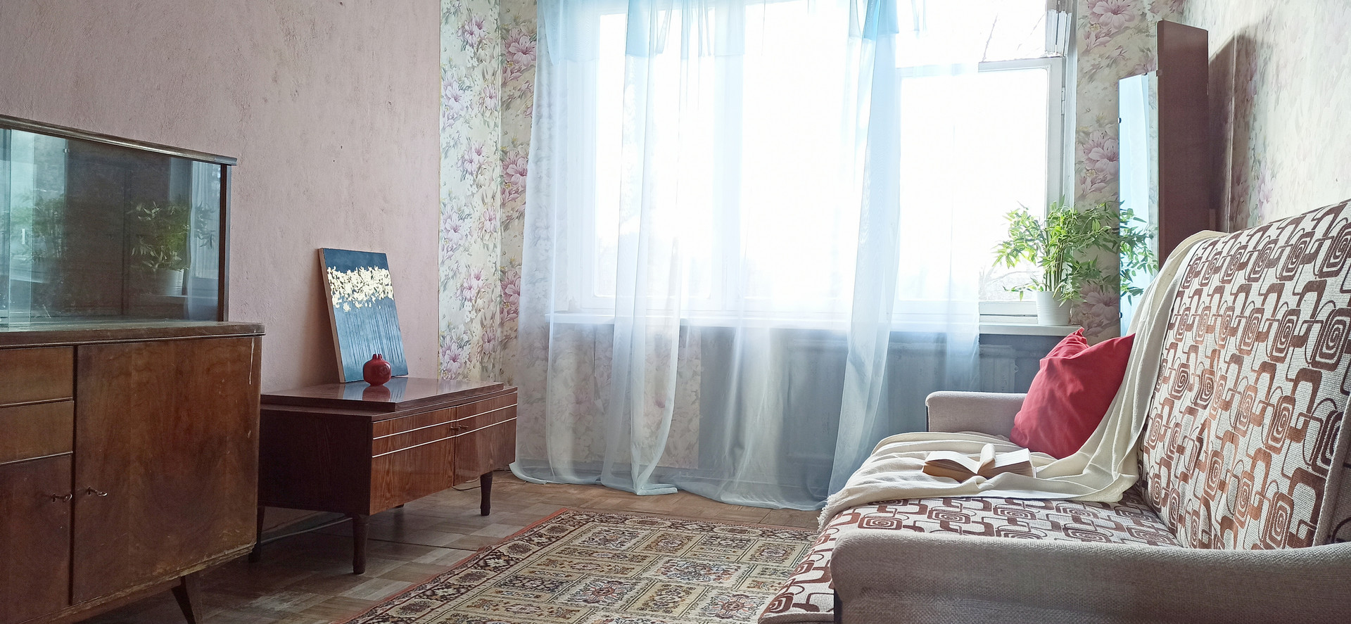 Широкие большие окна во всей квартире наполняют её светом .