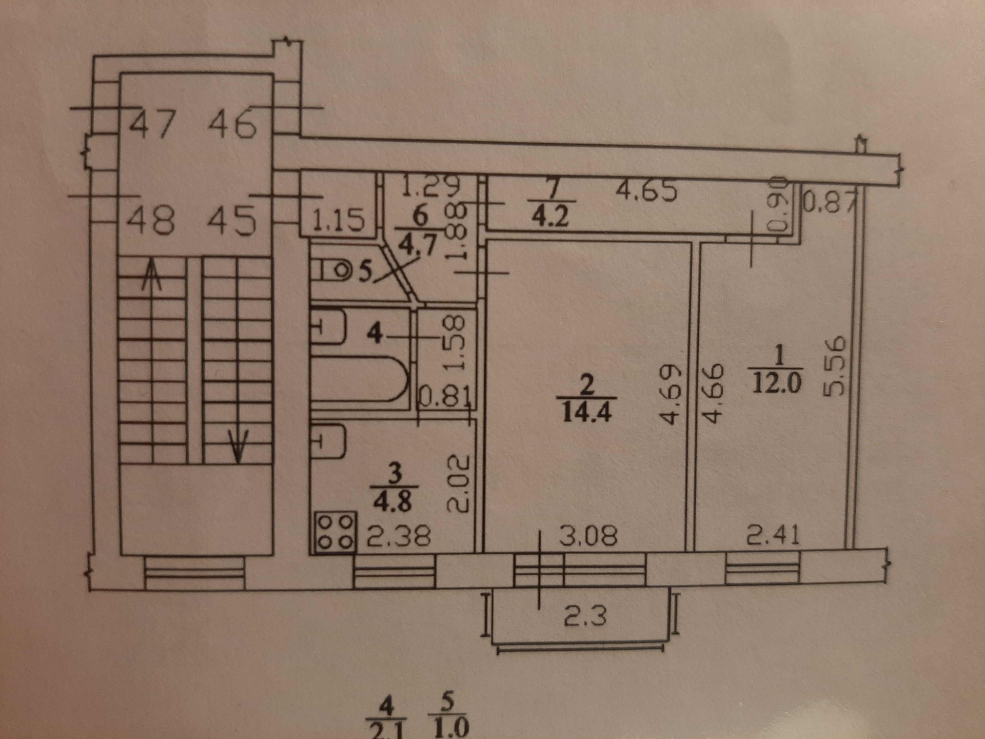 Общая площадь 43.2 м2