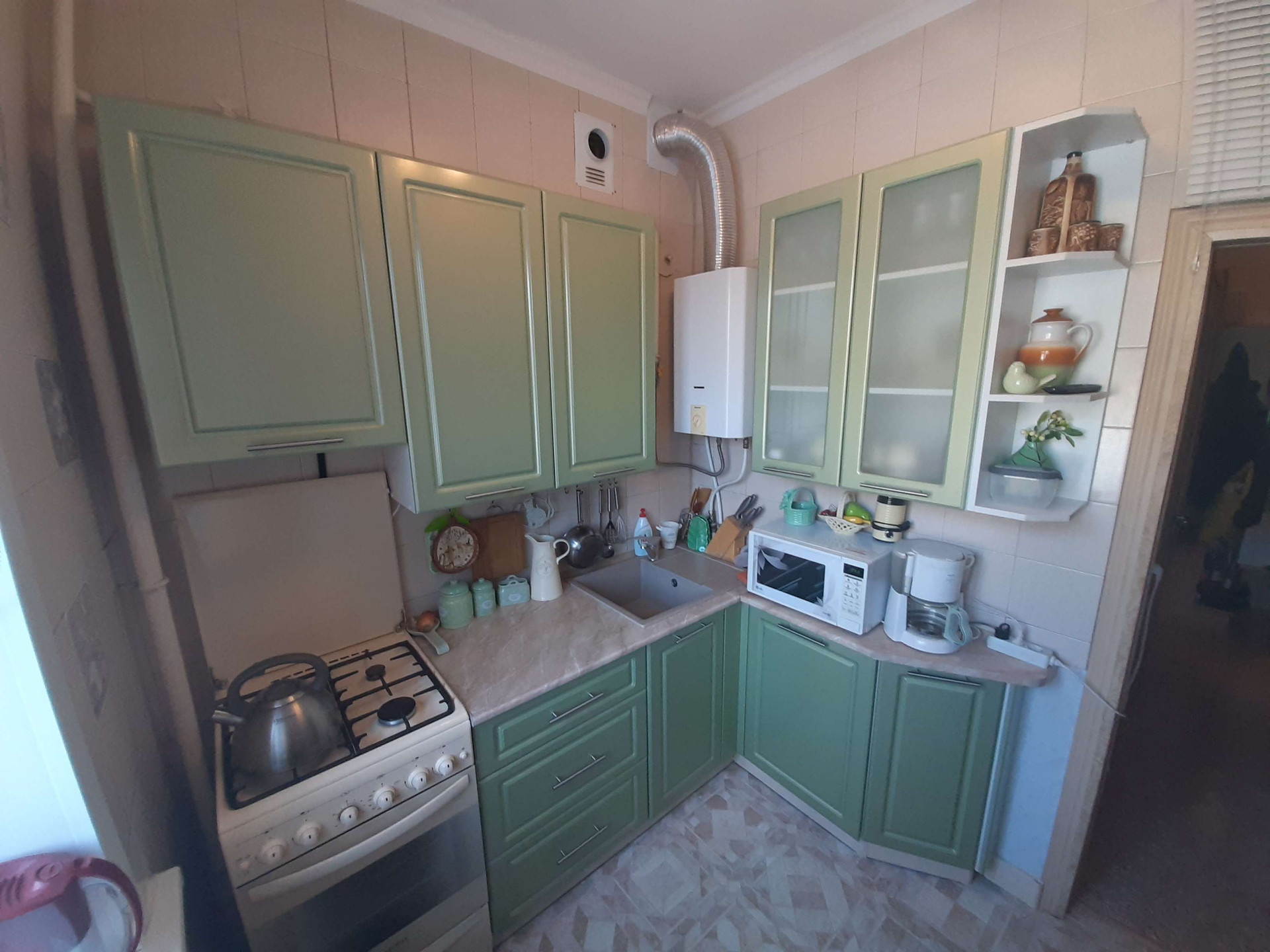 Санузел раздельный. Стеклопакеты, замена труб и радиаторов отопления.Остается новая кухня и мебель по согласованию.Газовая колонка расположена на кухне (не ржавеет).