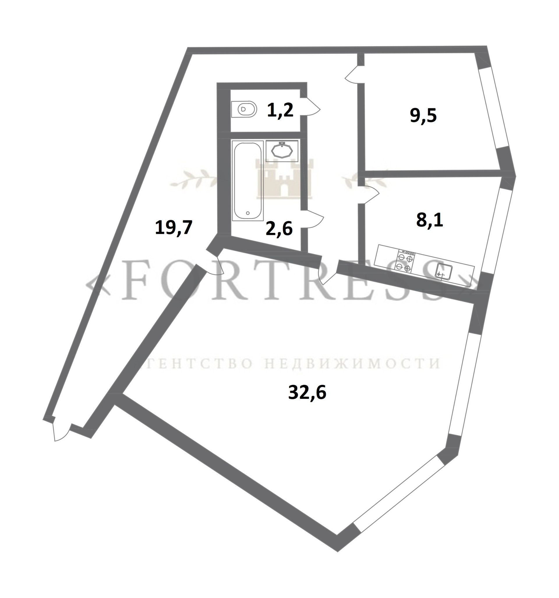 Жилая площадь 42.1 м2