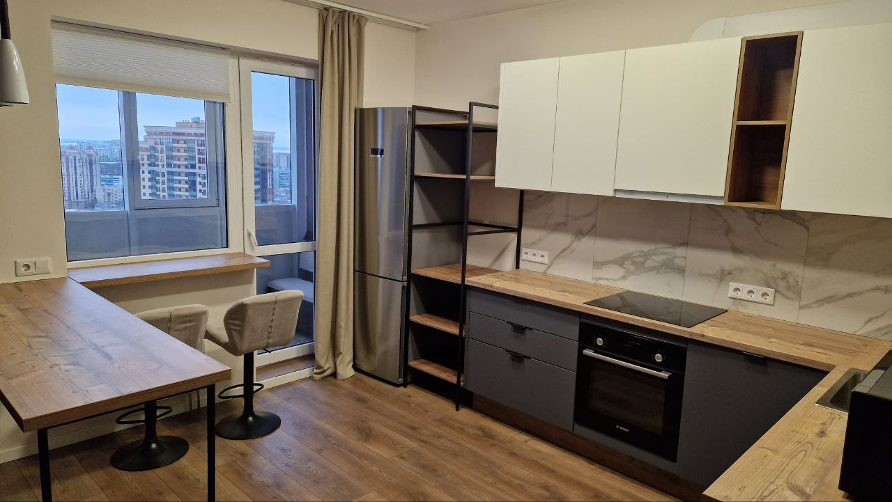 - большая кухня и удобная барная стойка с видом на город