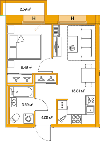 Общая площадь 32 м2