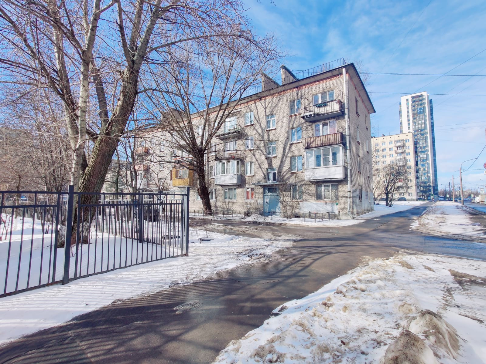 Окна выходят в зеленый двор, сторона света северо-западная.