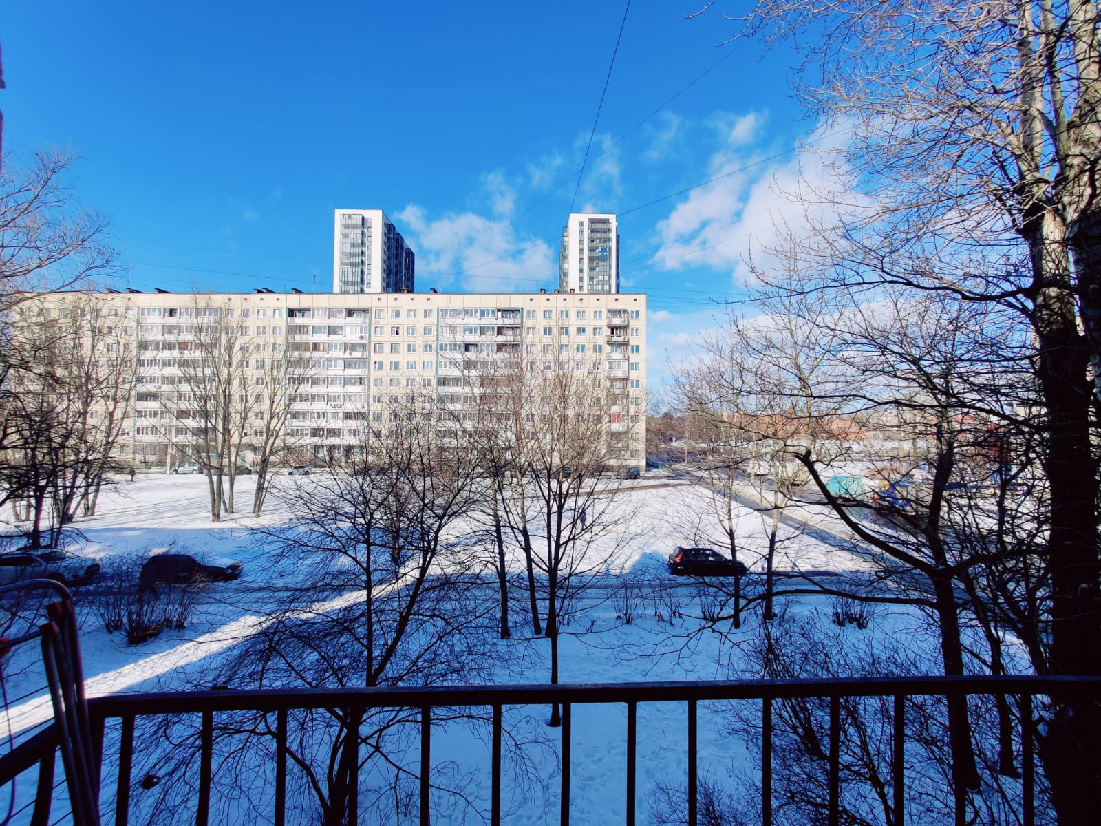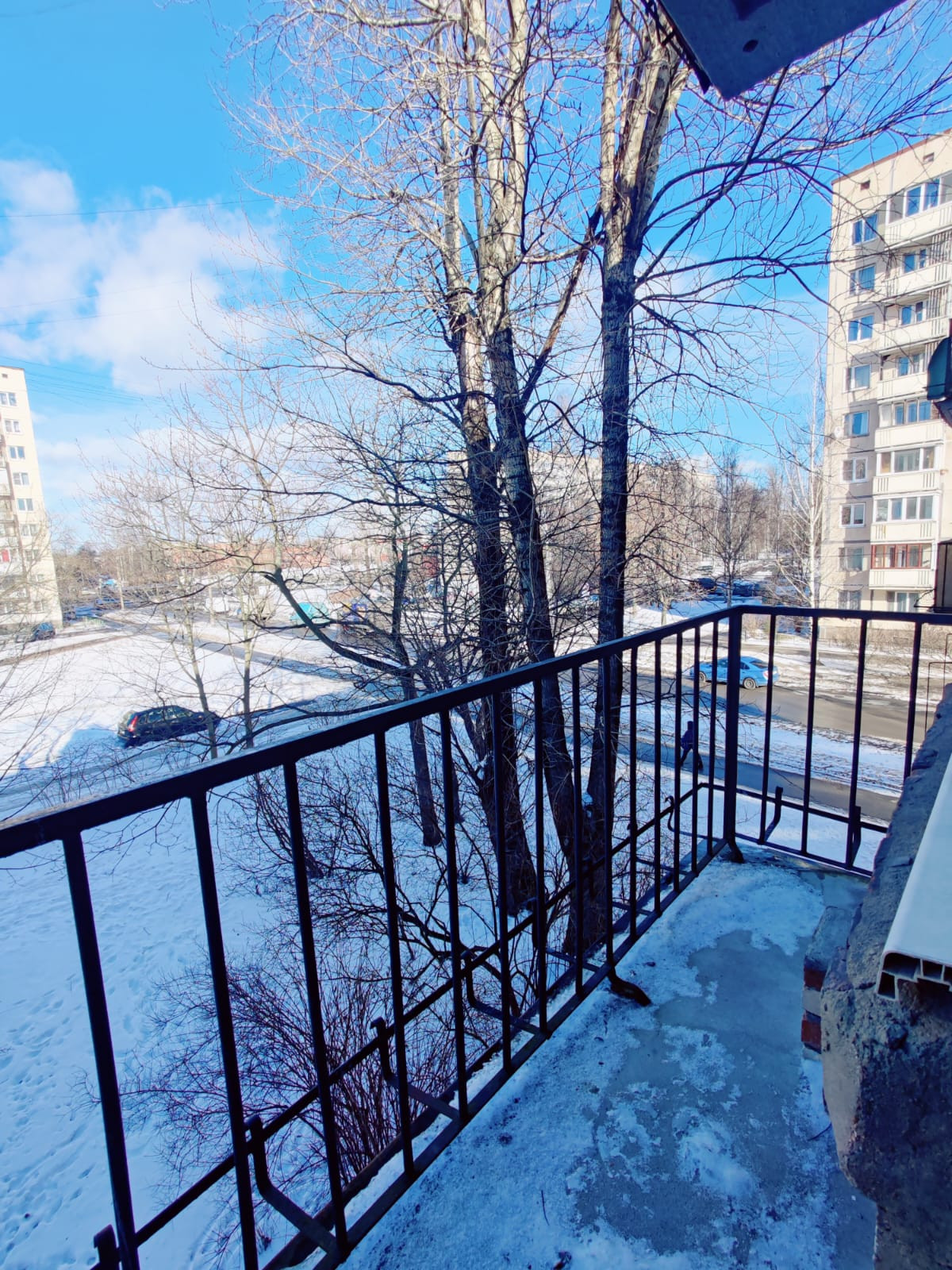 В квартире есть открытый балкон, выходит на зеленую зону между домами.