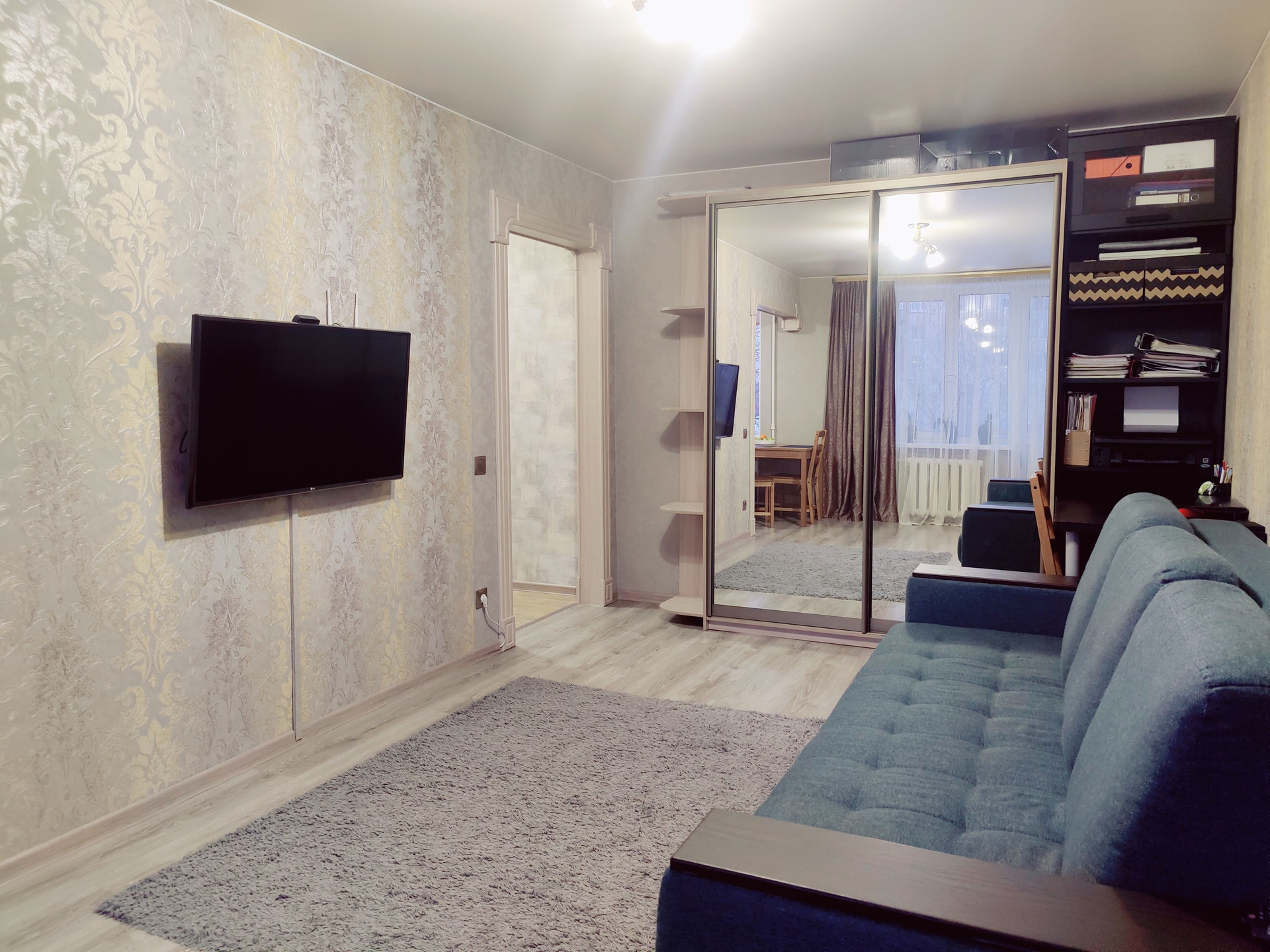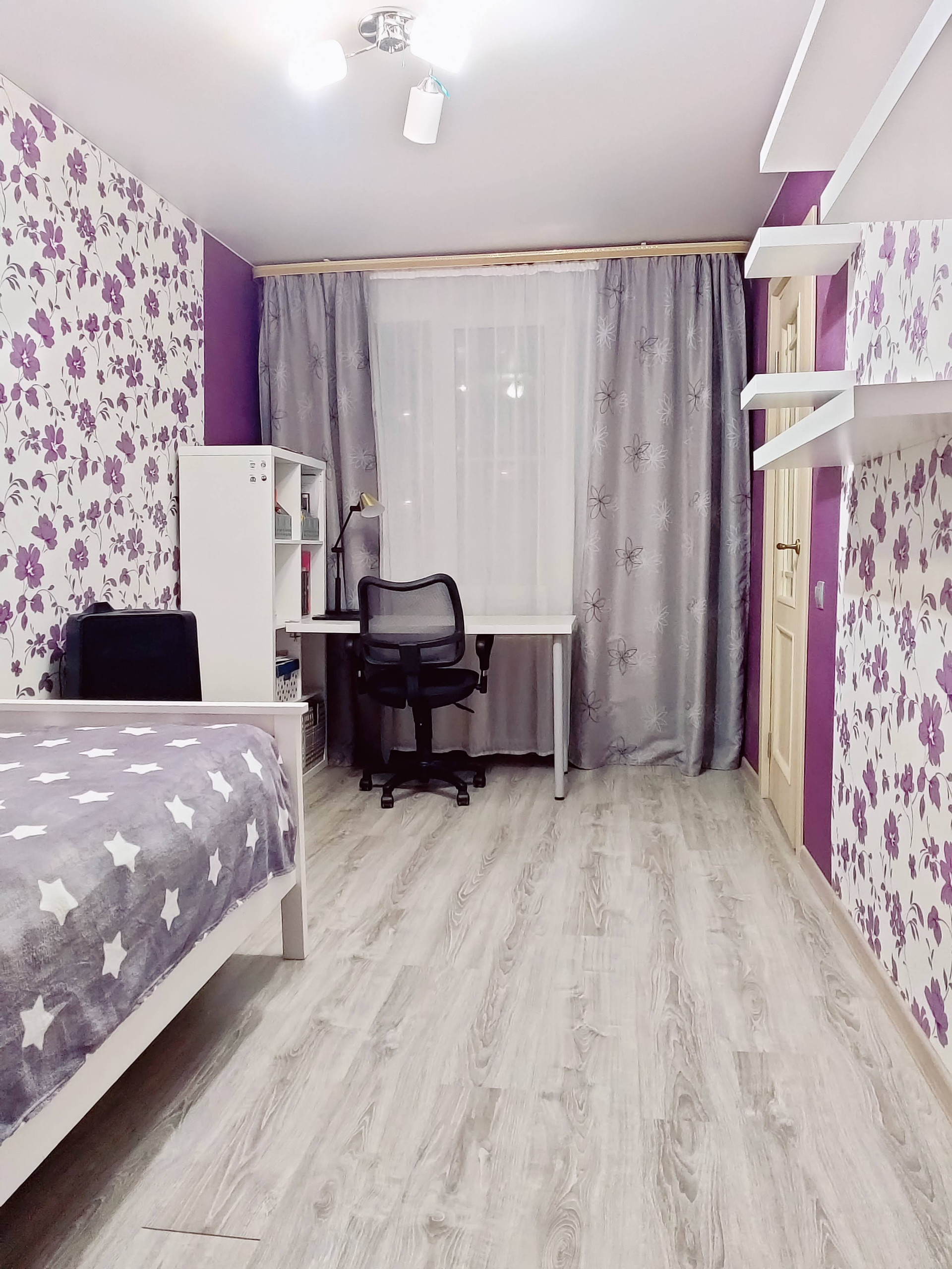 В квартире сделан полностью ремонт, установлена новая электрическая проводка, менялись полы, проведена новая сантехника, все окна заменены на стеклопакет.