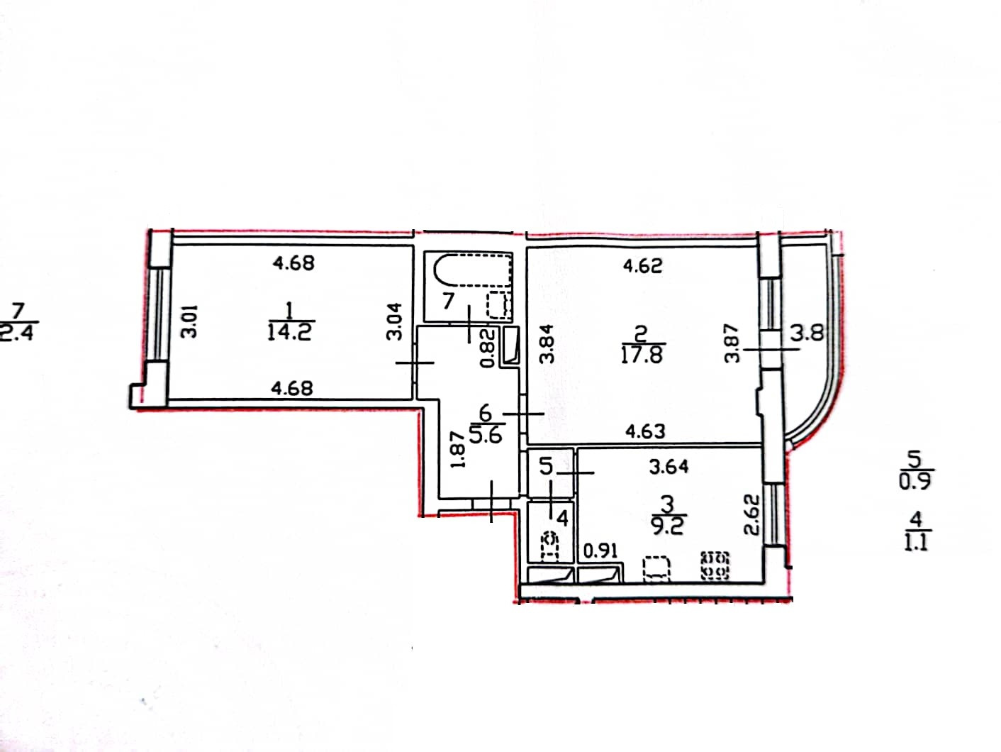 •    Двухкомнатная квартира. Общая площадь 51.2 кв.м. + лоджия 3.8 кв.м. Комната 17.8+14.2 кв.м.  Кухня 9.2 кв.м. Коридор 6.5 кв.м. Душевая 2.4 кв.м. Туалет 1.1 кв.м.  Высота потолков 2.7 метра. 3-й этаж 10-ти этажного кирпично-монолитного дома. Дом 2016 года постройки.