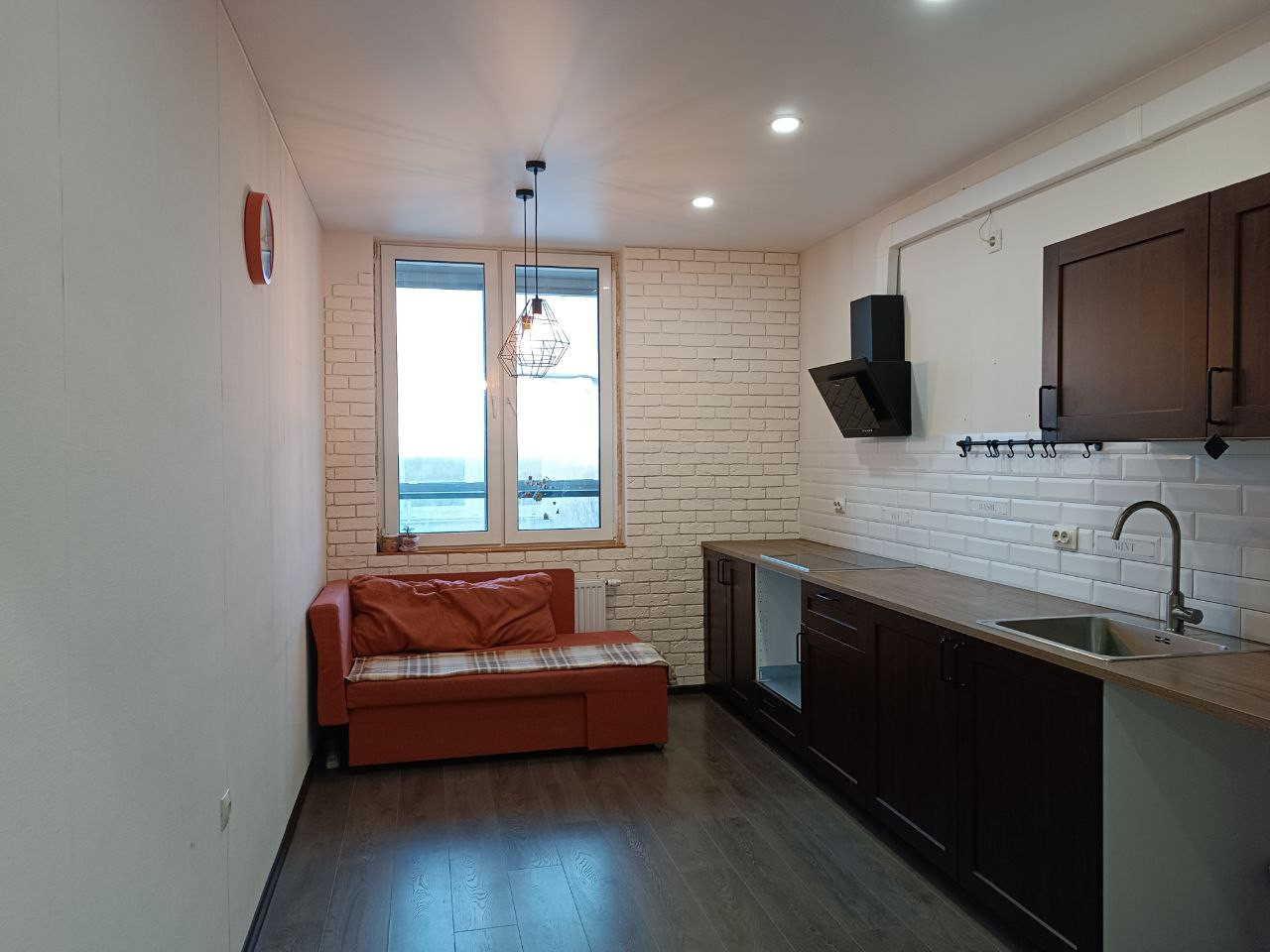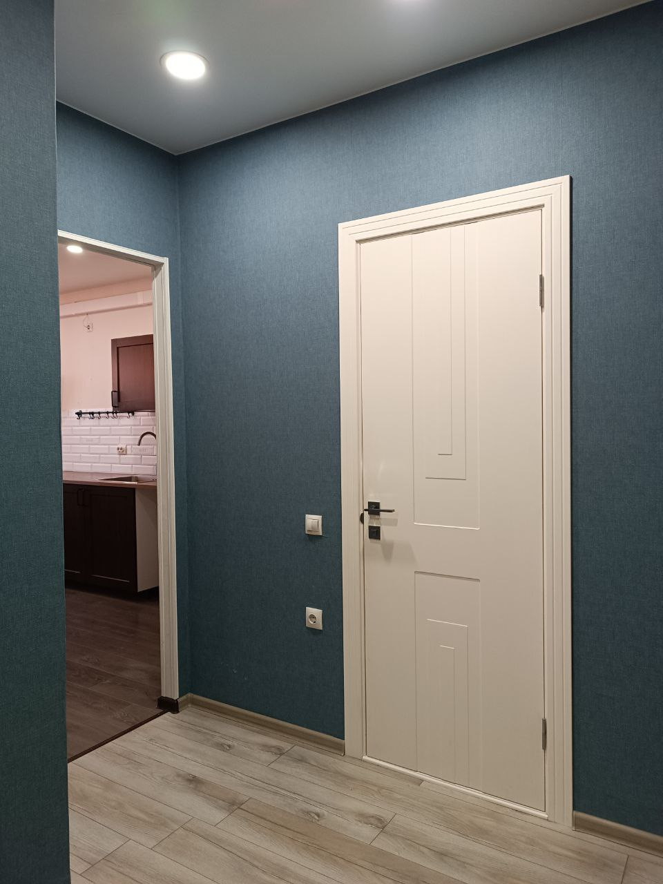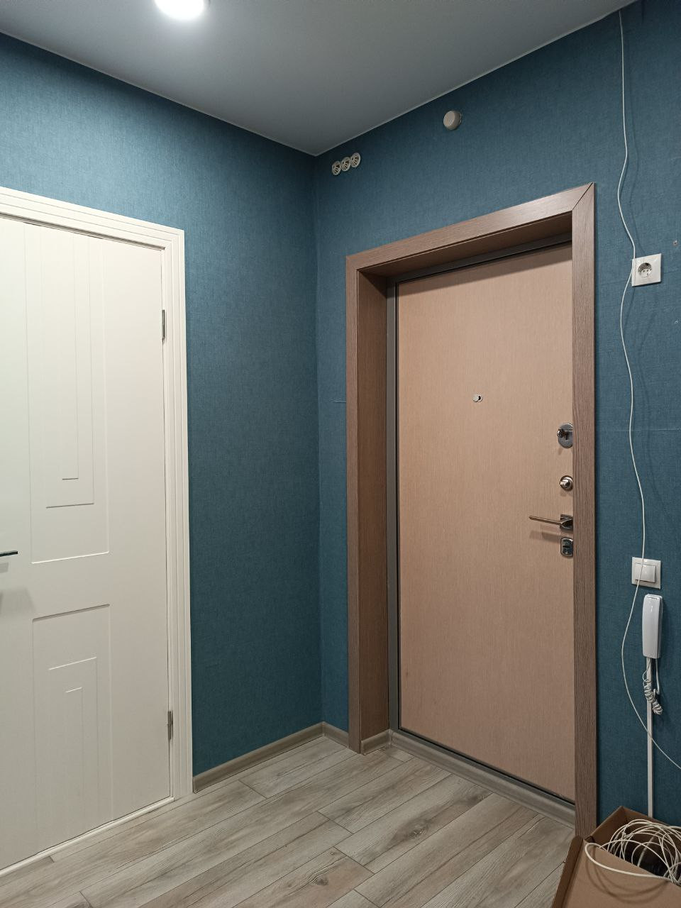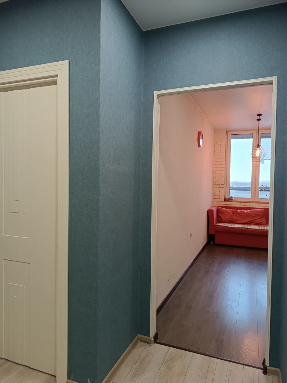 Просторная прихожая. Выполнен ремонт, полностью готова для проживания. Напольное покрытие из ламината высокой прочности, потолок натяжной матовый, установлены новые межкомнатные двери. Квартира тихая, шум с улицы неслышен, соседи спокойные. Есть интернет.