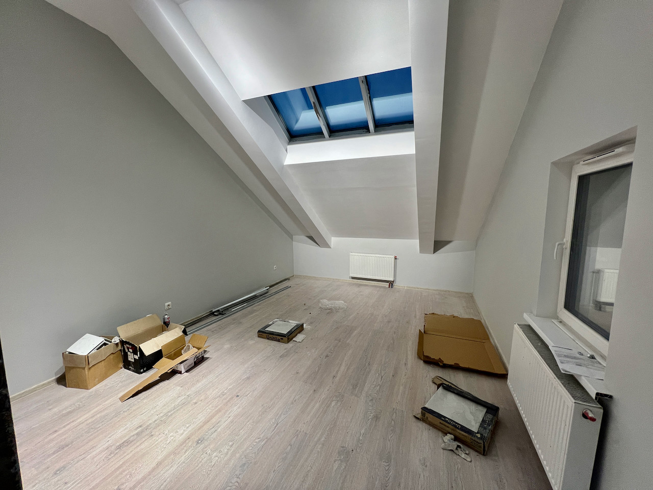 Квартира очень удачна расположена - окна на южную сторону, есть второй свет - мансардные окна. Потолки - 4м.